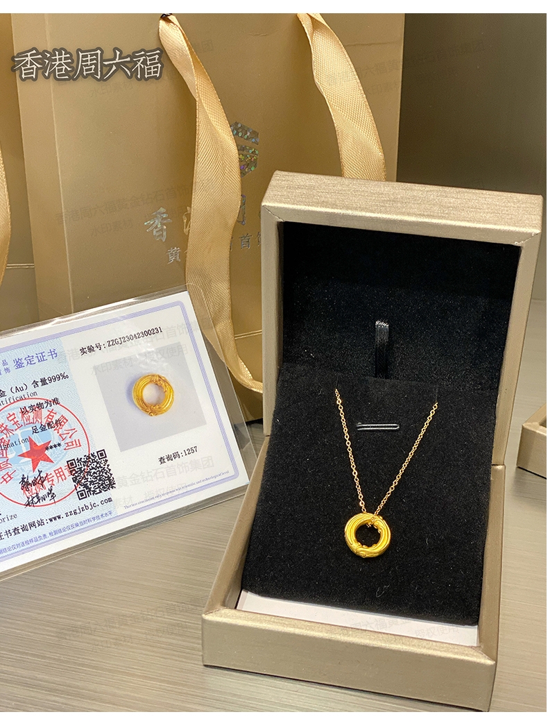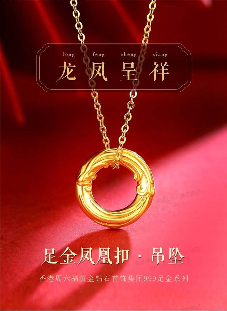 香港周六福5G黄金-足金凤凰扣吊坠【材质:足金含约:0.1g 内镶3DAG模型】
