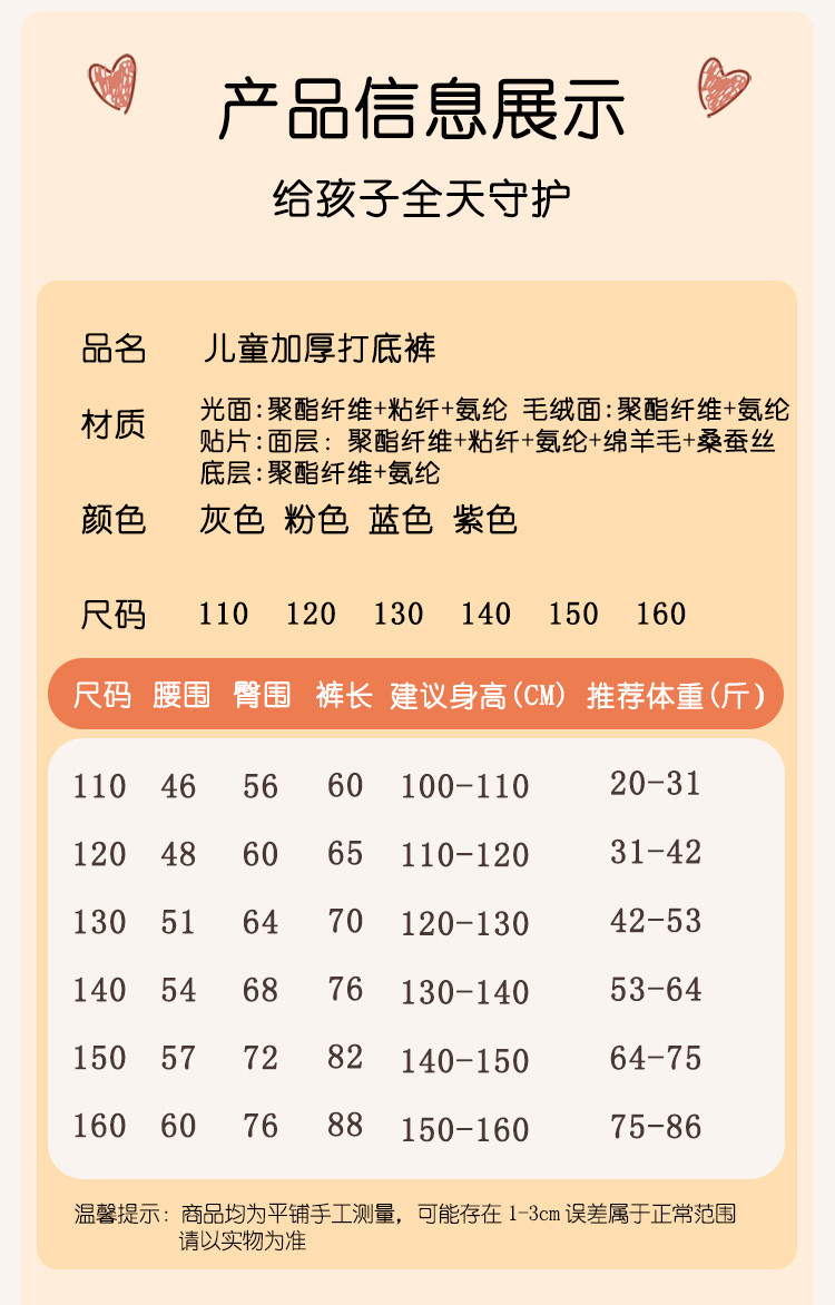 商品名称:【加绒加厚 护膝贴片】润肤春秋冬暖膝儿童保暖裤男女童打底裤 865886