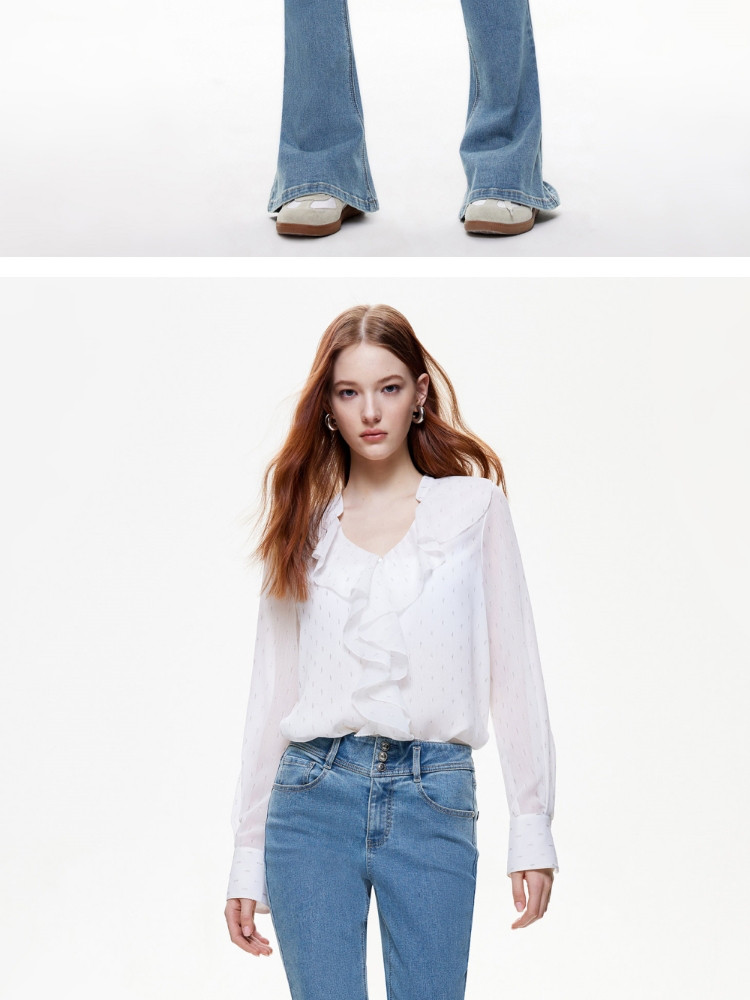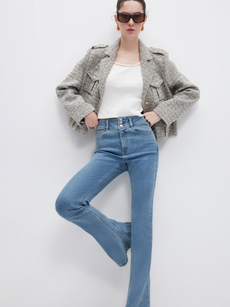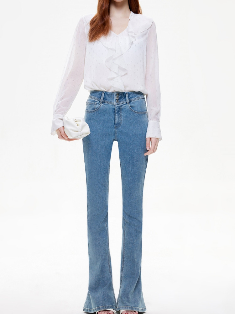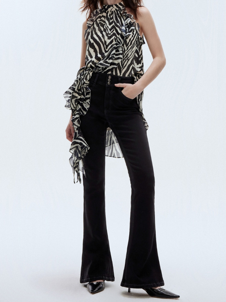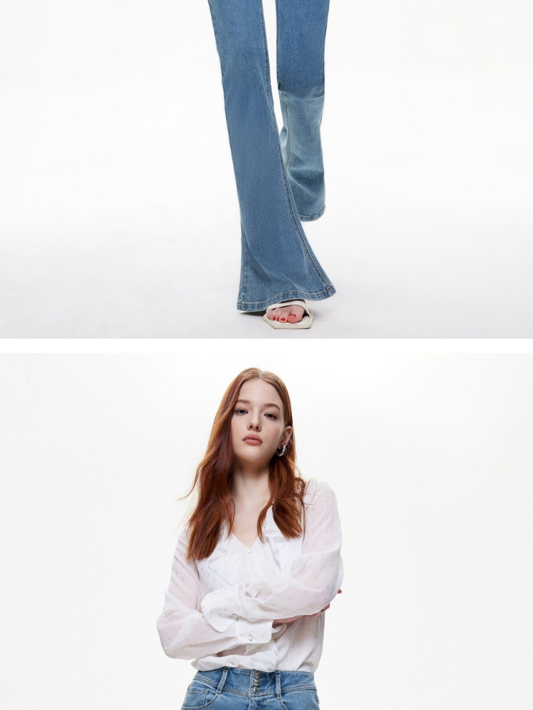 【个性马蹄裤】夏季通勤风喇叭长裤牛仔裤女 080026