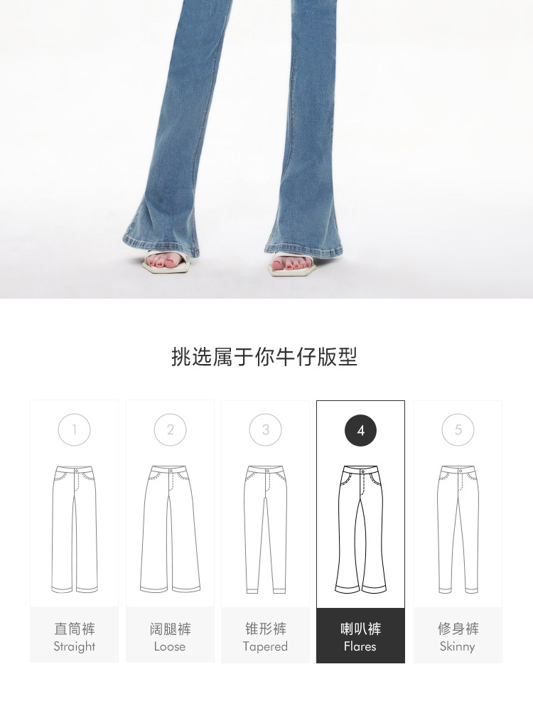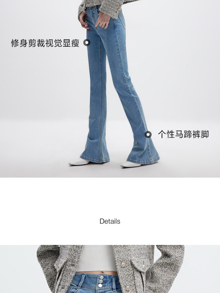 商品名称:【个性马蹄裤】夏季通勤风喇叭长裤牛仔裤女 080026