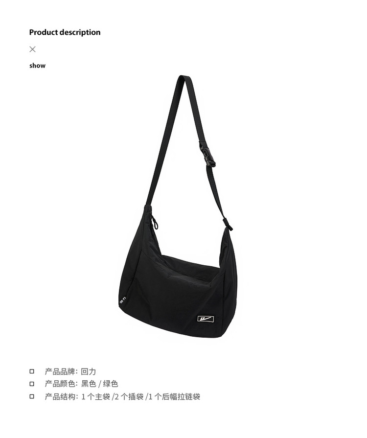 商品名称:潮流出街女运动休闲单肩包男百搭流行斜挎包旅行月牙包枕头包 607817