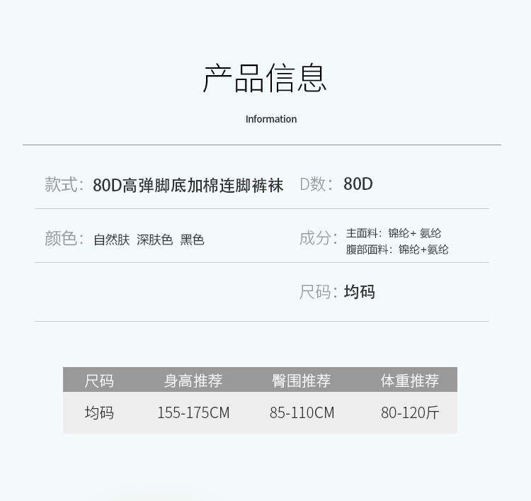 商品名称:【光腿神器2条装】收腹提臀80D高弹脚底加棉连脚打底裤袜女 752286