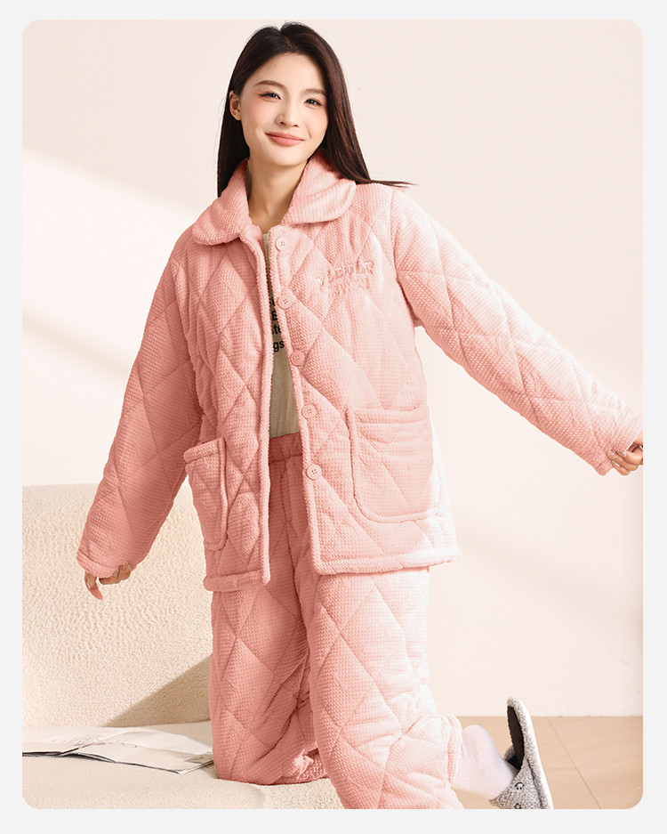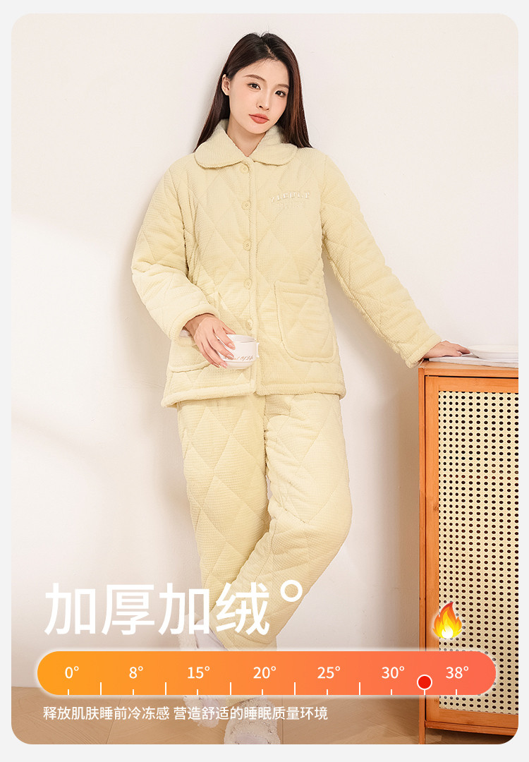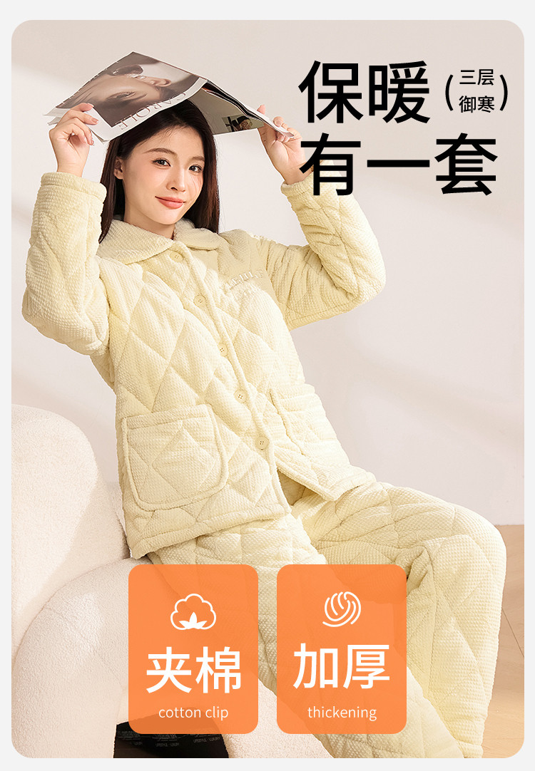 【三层加厚】睡衣女秋冬甜美可外穿女士家居服女套装 009739