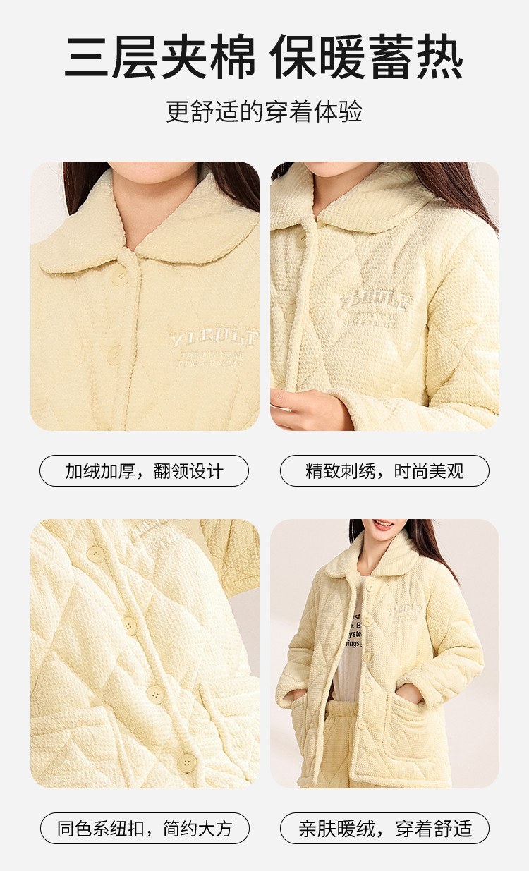 商品名称:【三层加厚】睡衣女秋冬甜美可外穿女士家居服女套装 009739