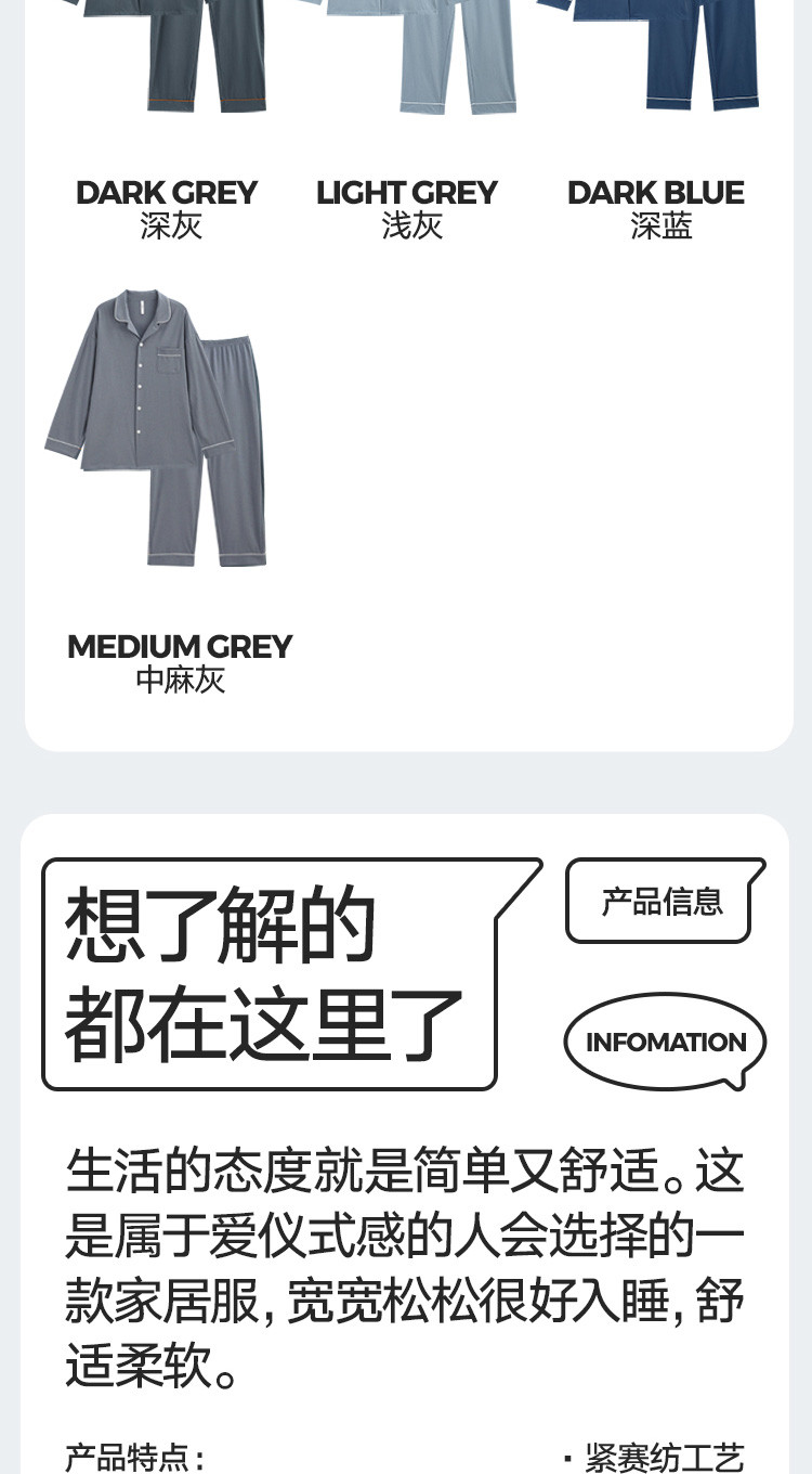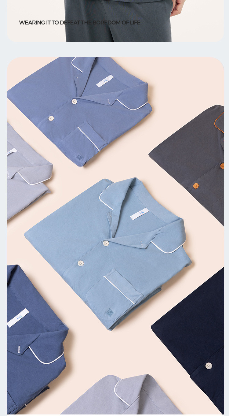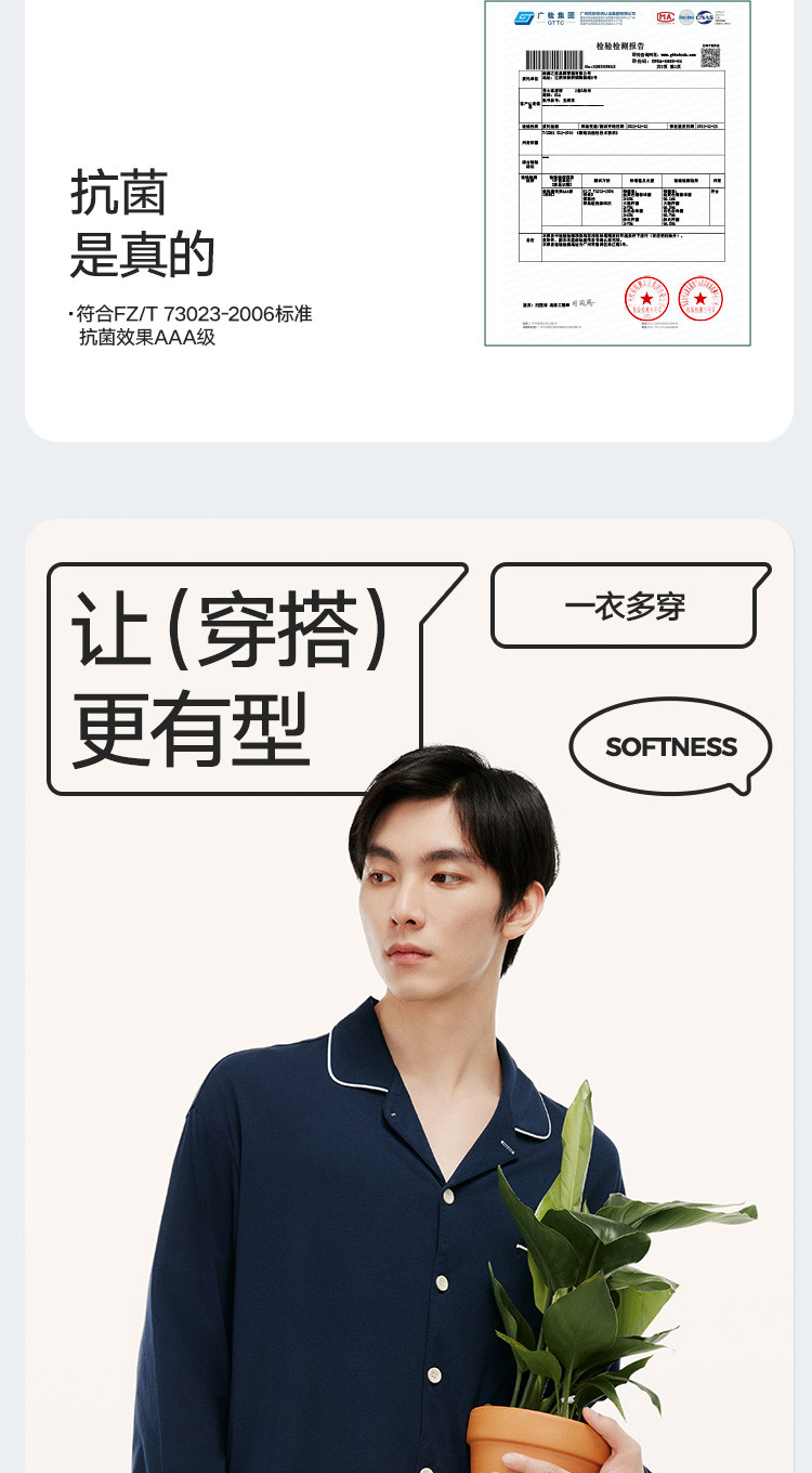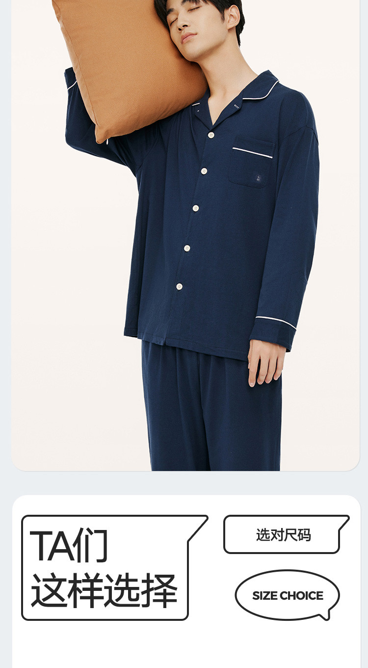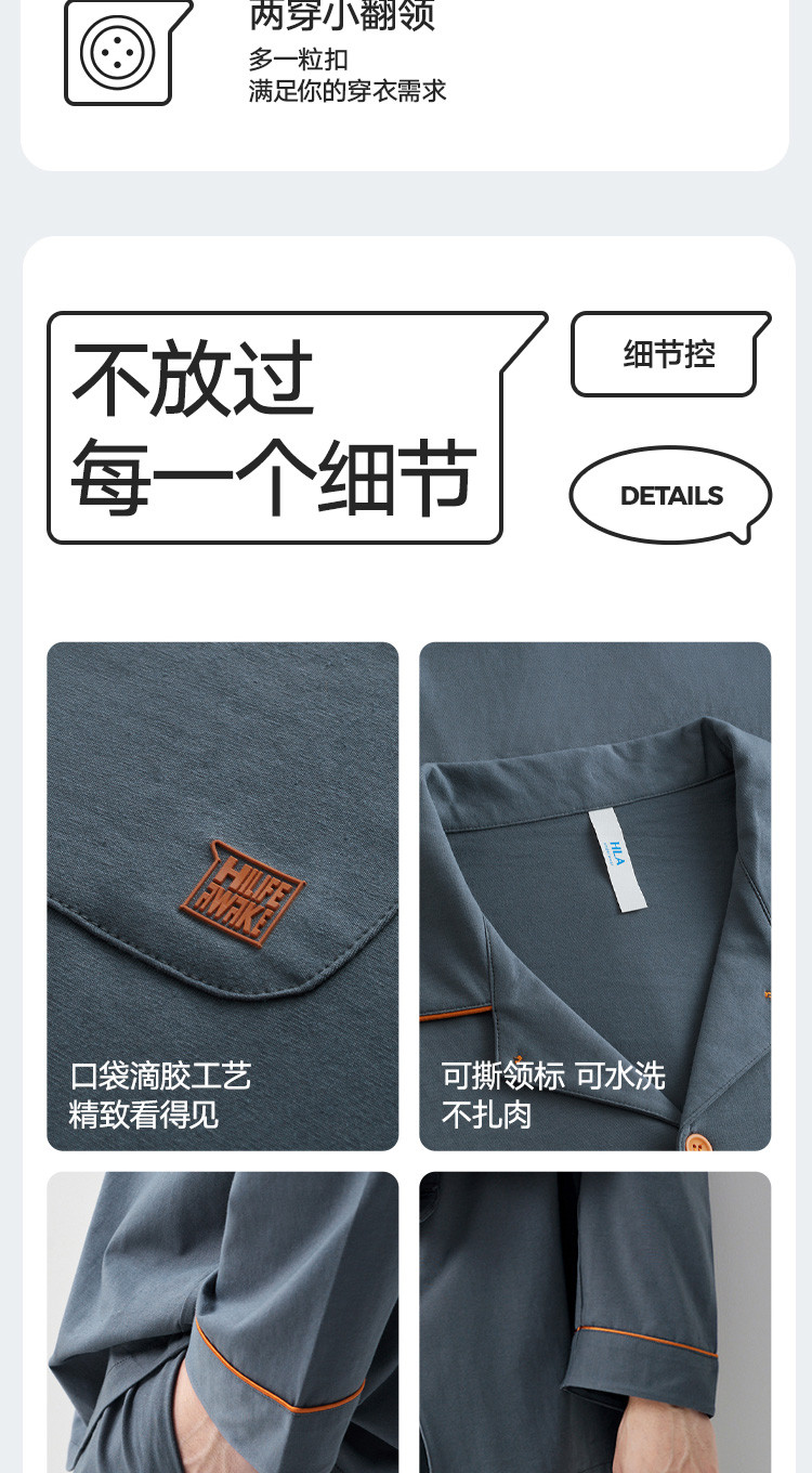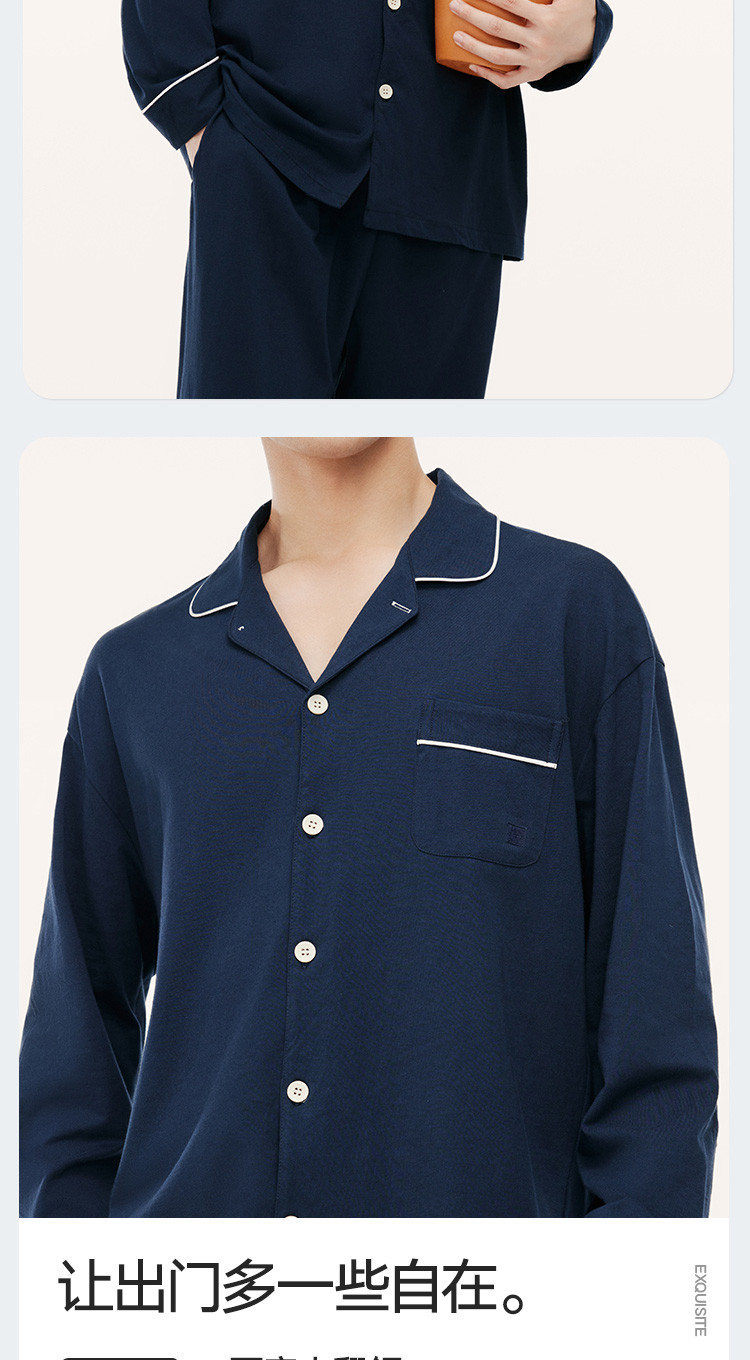 商品名称:【100%纯棉抑菌】翻领睡衣男长袖家居服套装高级感男士可外穿 481242