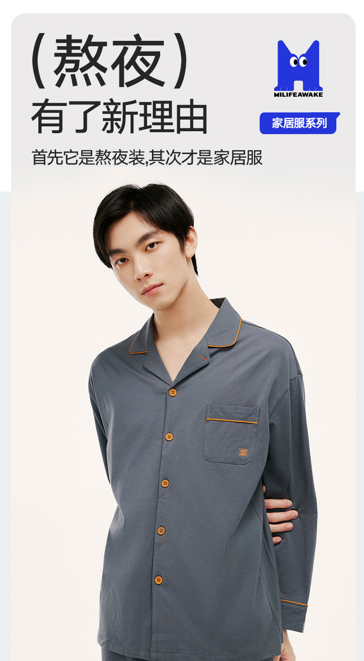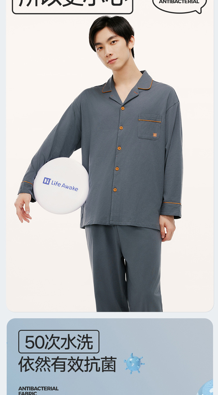 【100%纯棉抑菌】翻领睡衣男长袖家居服套装高级感男士可外穿 481242