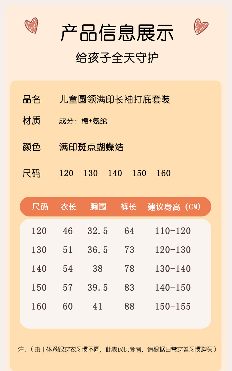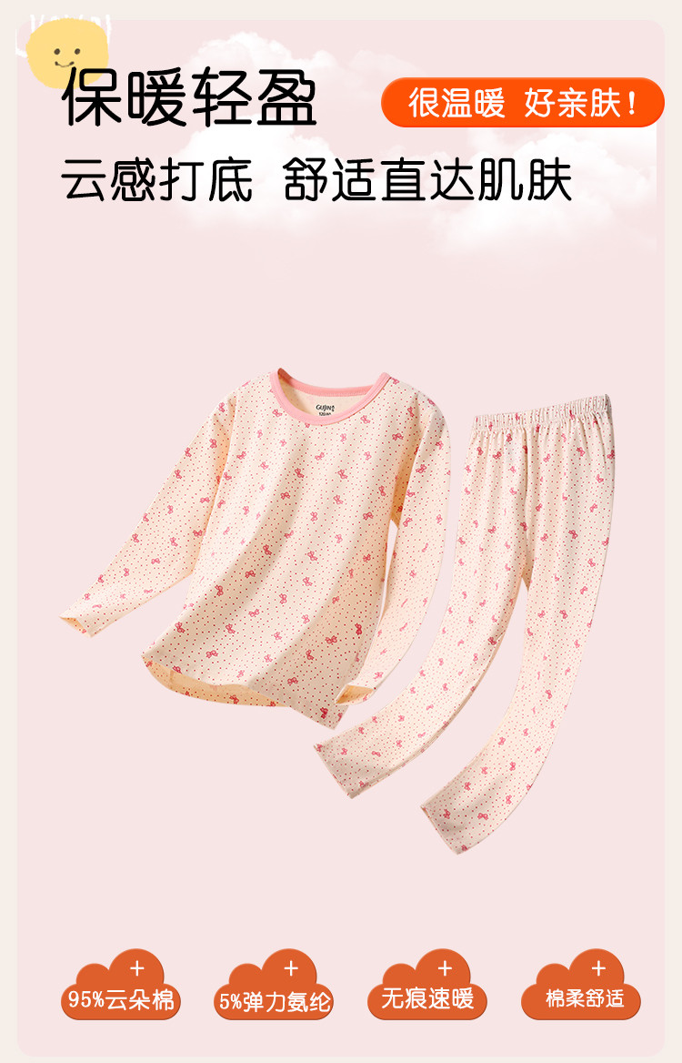 商品名称:【95云朵棉】软糯舒适亲肤贴身打底儿童圆领长袖睡衣女童家居服 836894