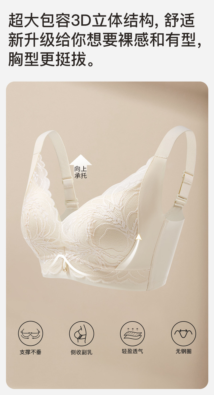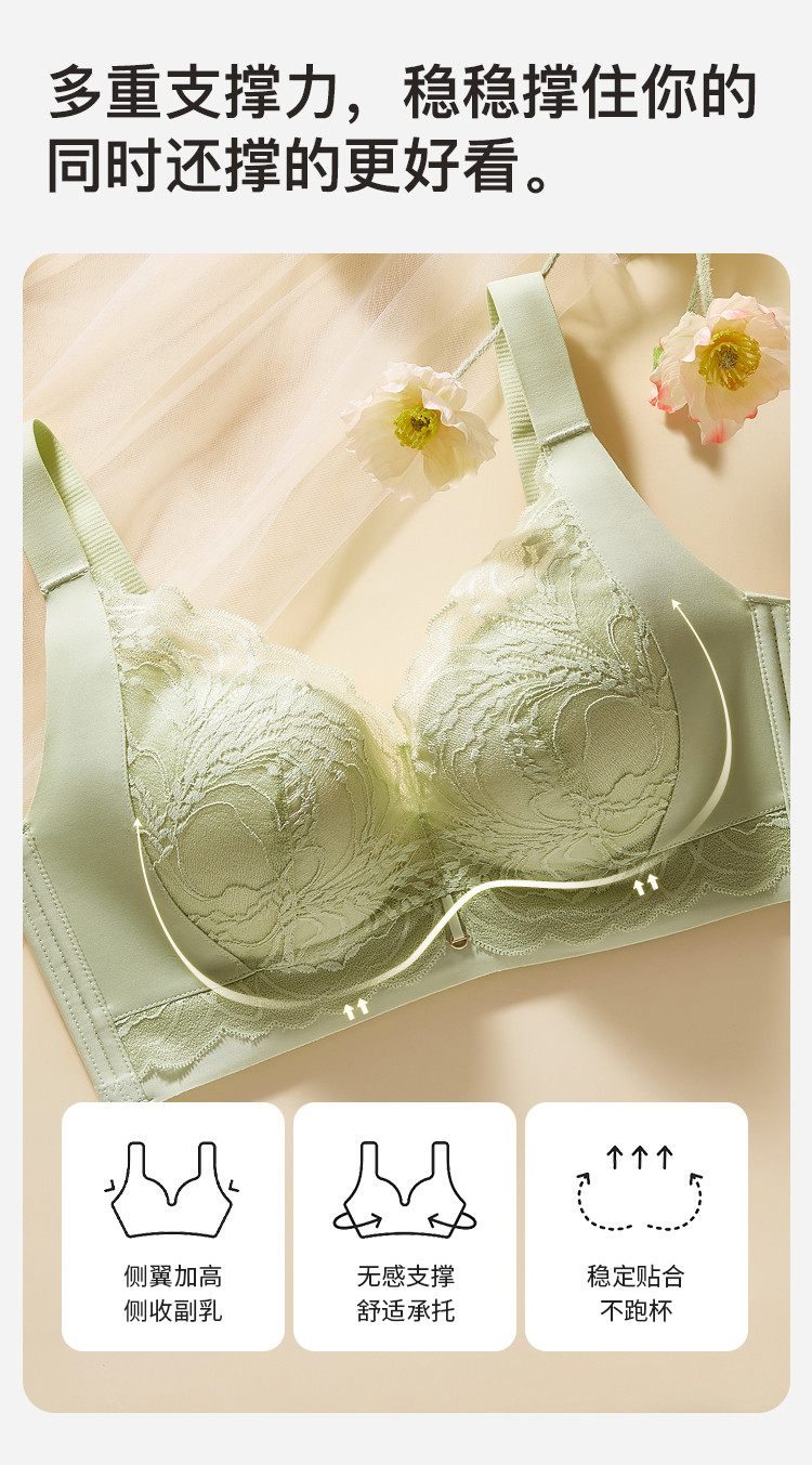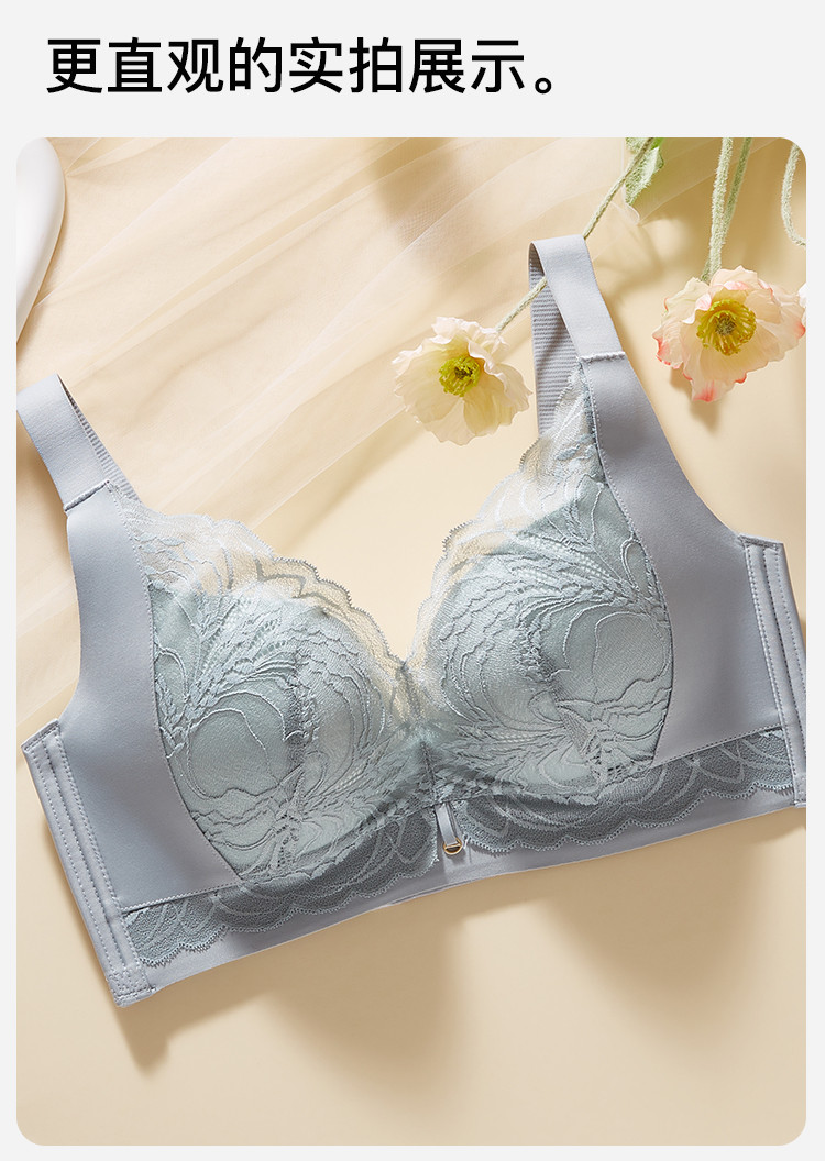 商品名称:【大胸专属】内衣女聚拢防下垂收副乳蕾丝调整型无钢圈胸罩文胸女 816011
