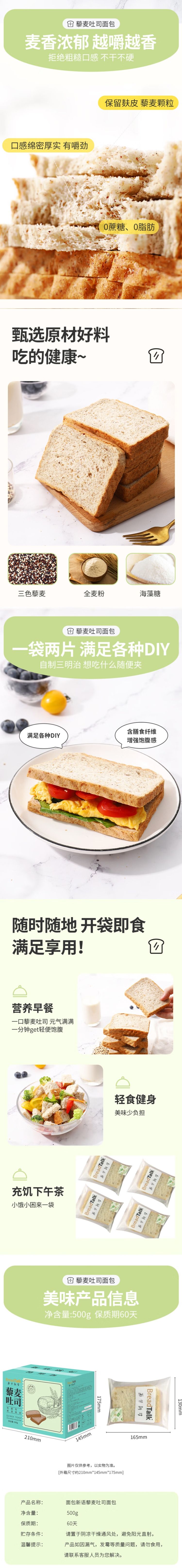 商品名称:面包新语三色藜麦谷物代餐吐司500g*2箱(每箱10包)