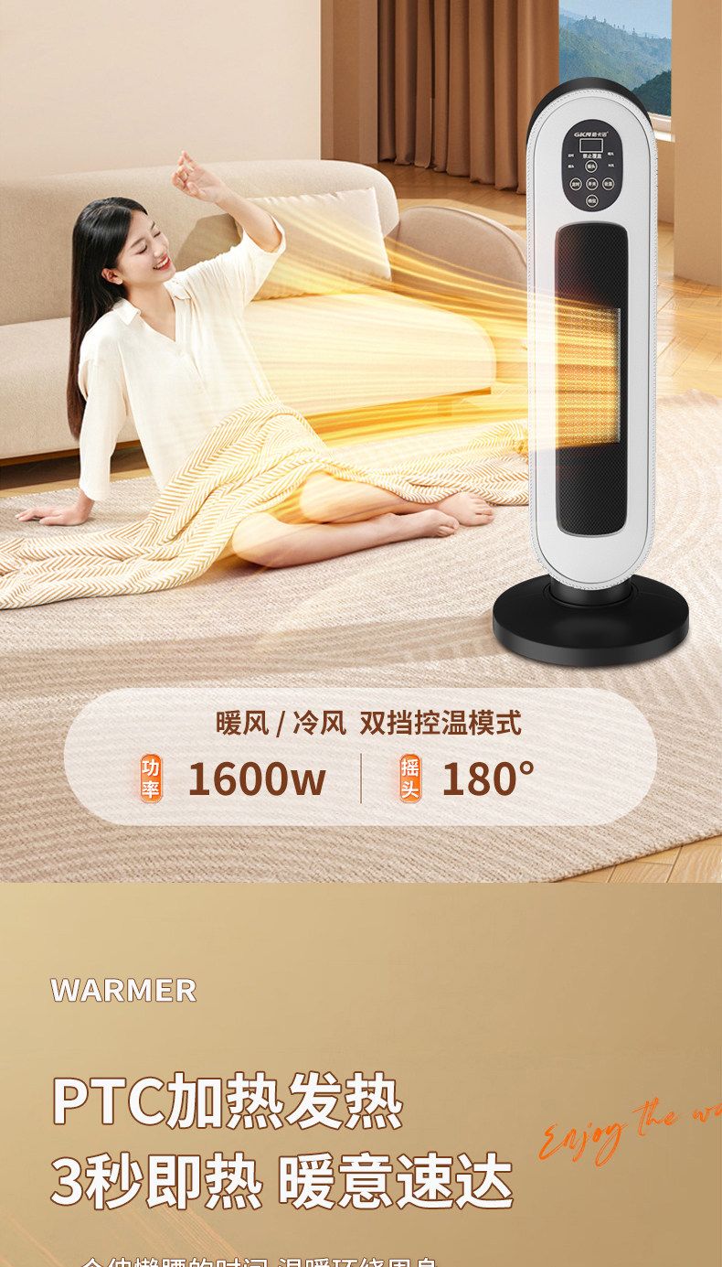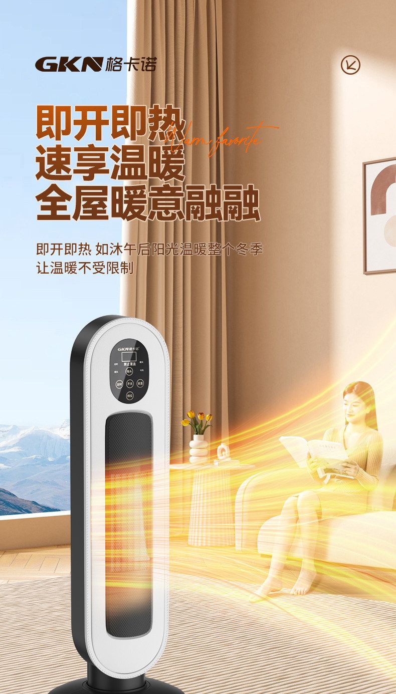 商品名称:格卡诺新款立式取暖器家用速热卧室节能电暖气数显遥控款立式暖风机GKN-NFJ-11