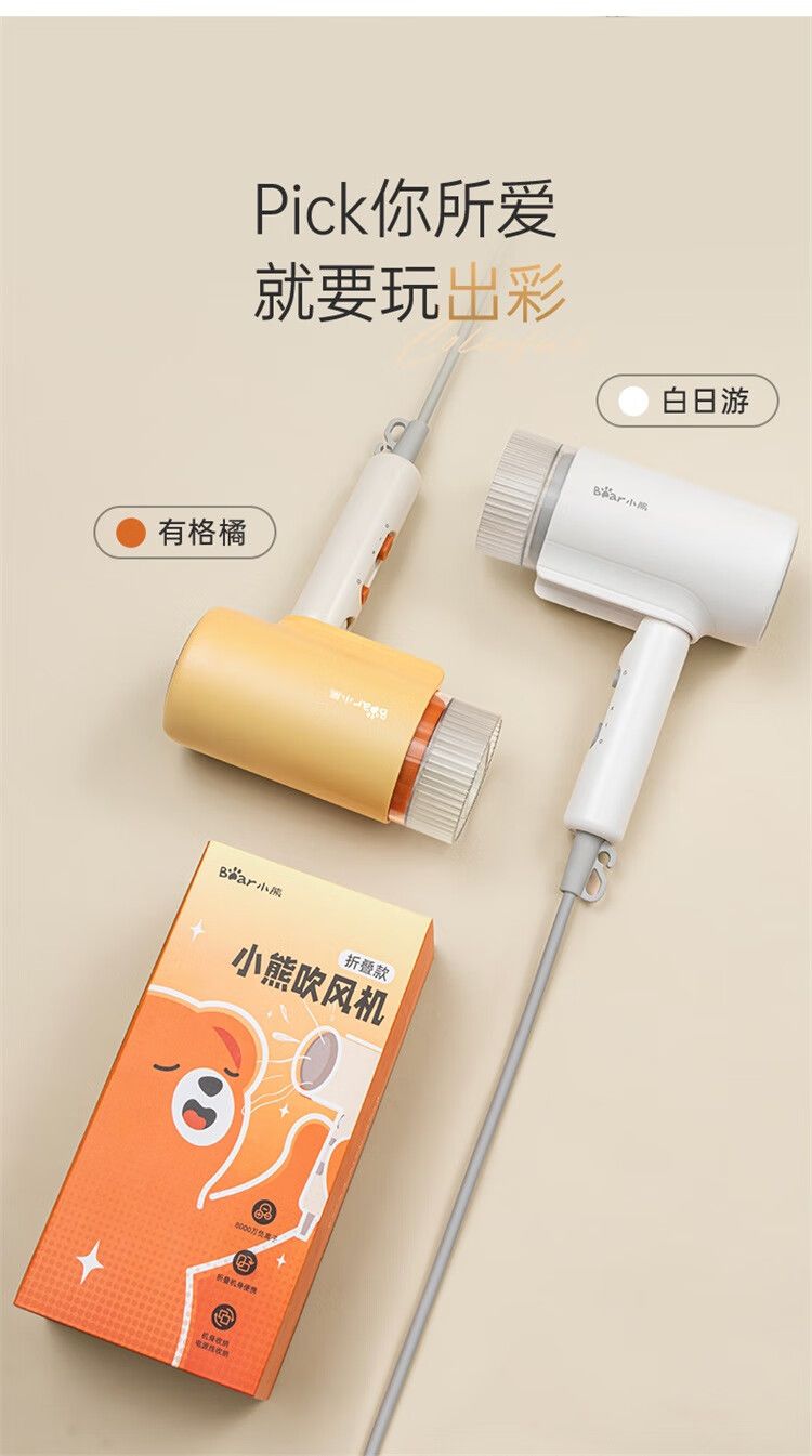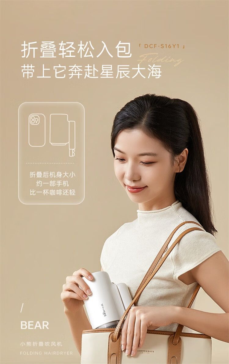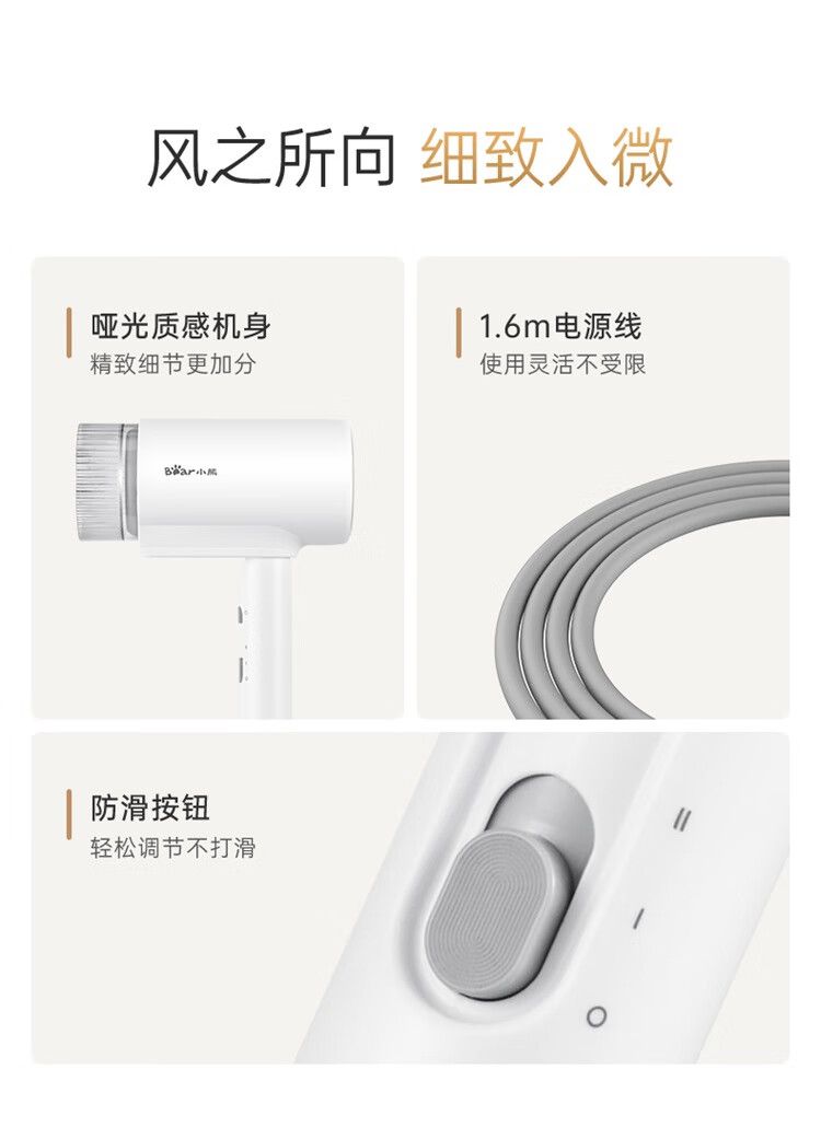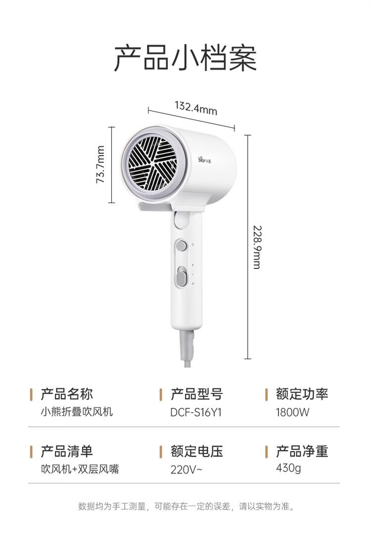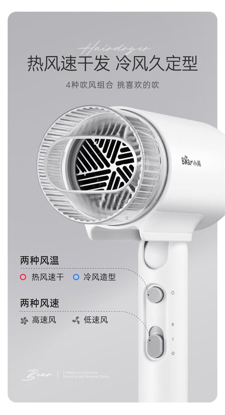商品名称:小熊 电吹风机DCF-S16Y1 宿舍用学生吹风筒1800W功率大风量速干便携可折叠式 米白色