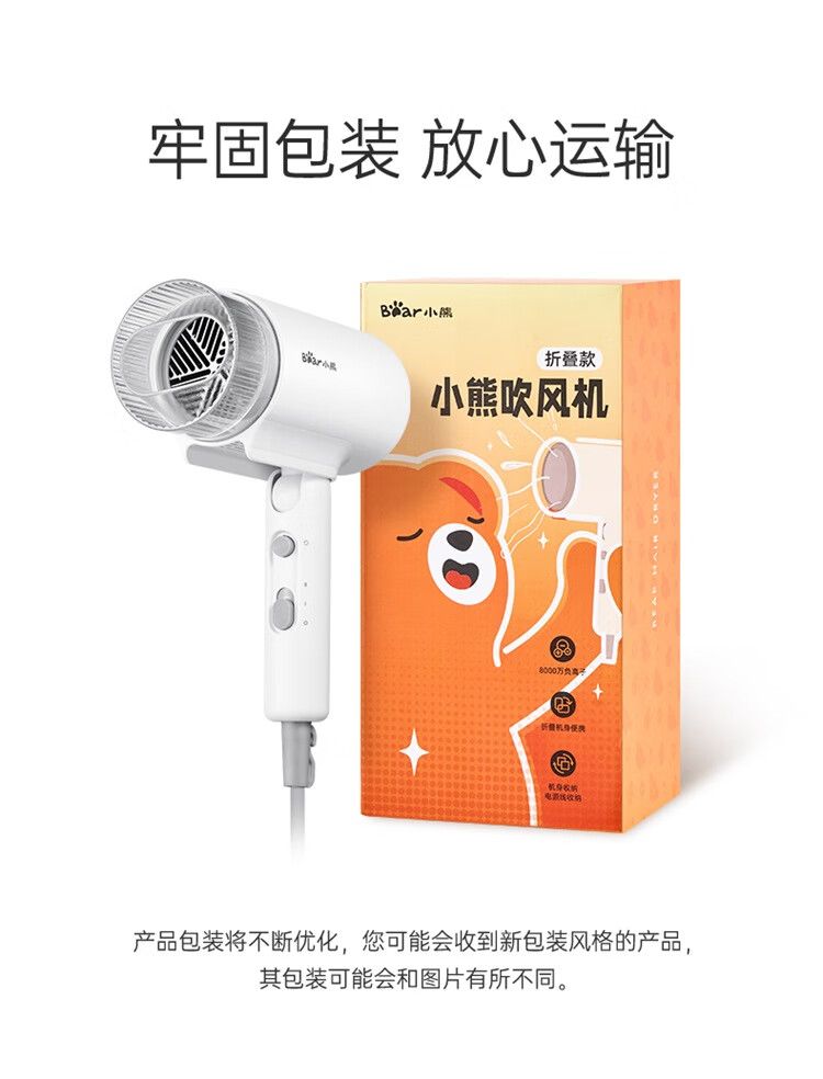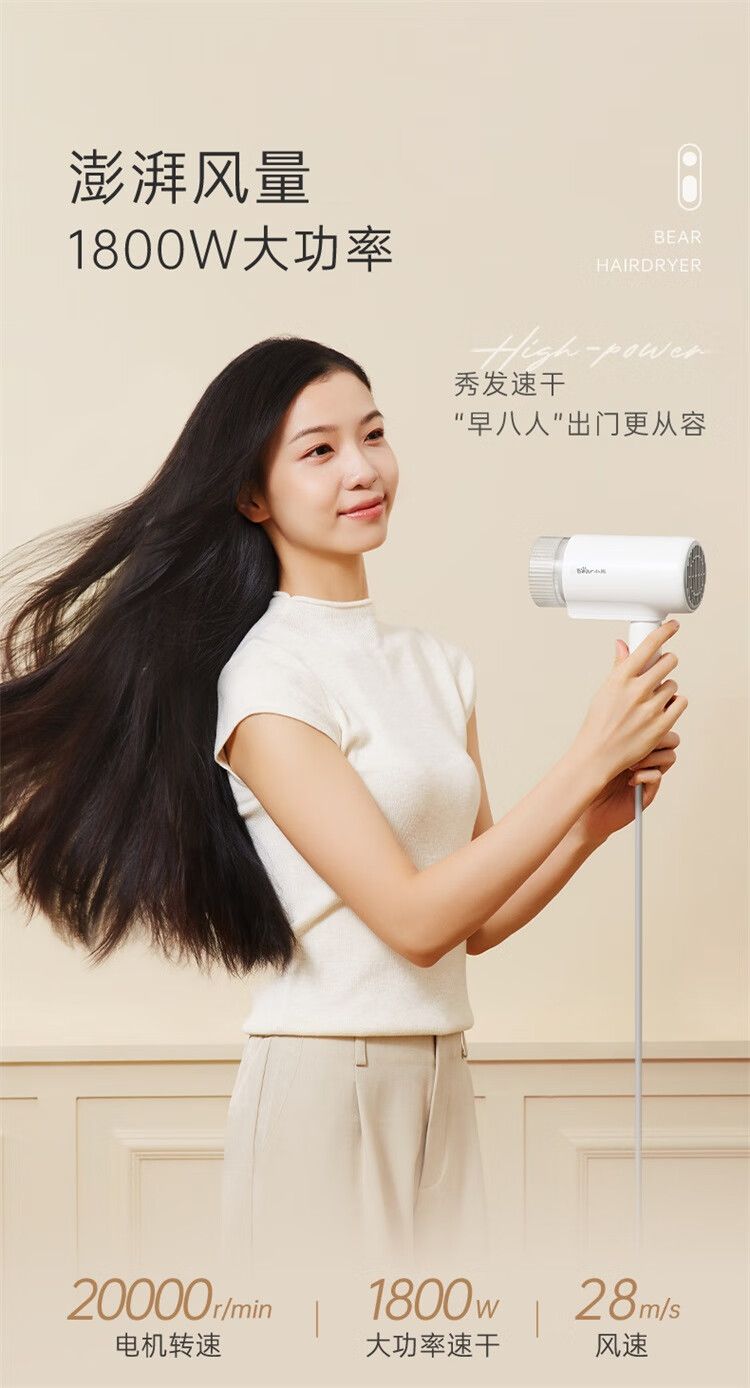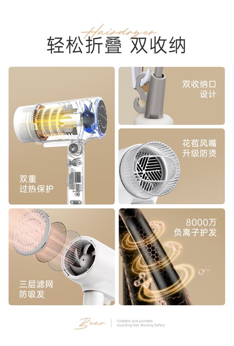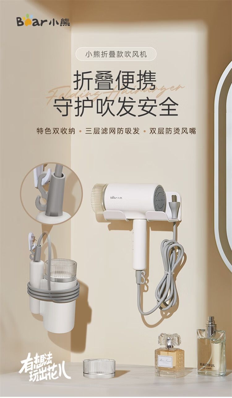 商品名称:小熊 电吹风机DCF-S16Y1 宿舍用学生吹风筒1800W功率大风量速干便携可折叠式 米白色