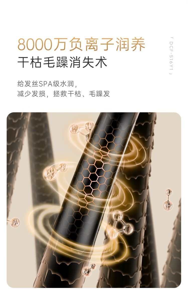 小熊 电吹风机DCF-S16Y1 宿舍用学生吹风筒1800W功率大风量速干便携可折叠式 米白色