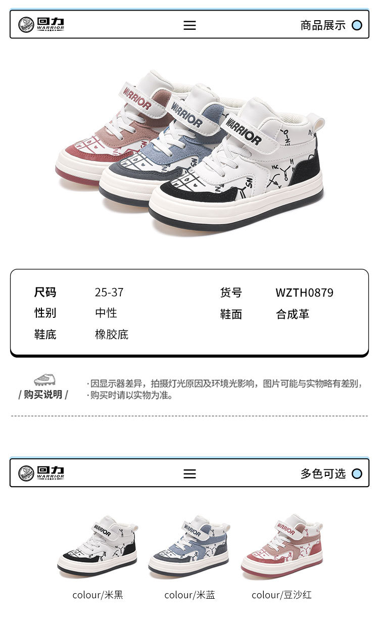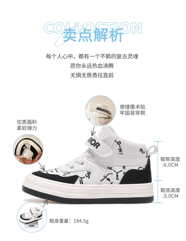 商品名称:【时尚潮流】春季爆款儿童涂鸦高帮板鞋舒适轻便运动休闲鞋 630851