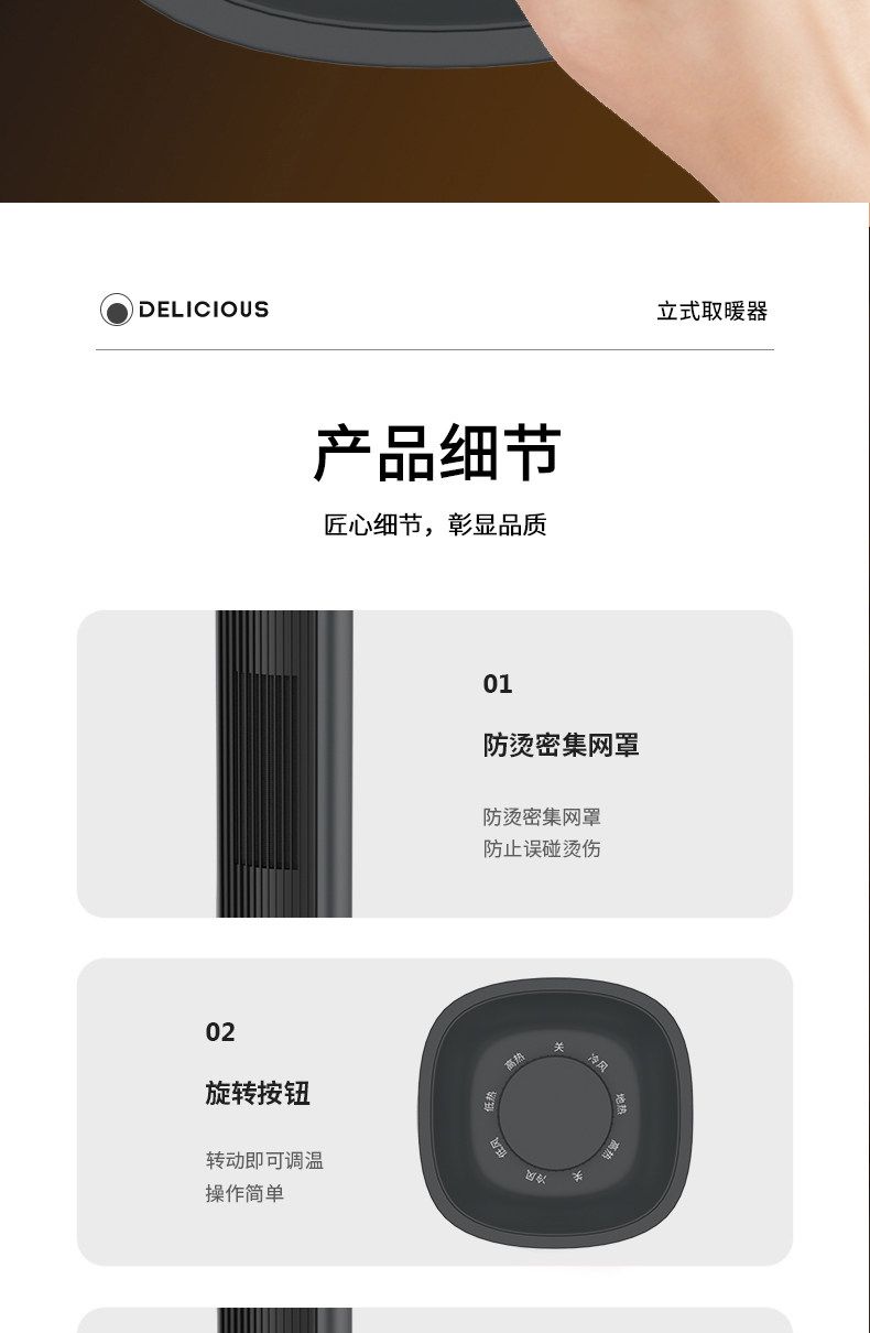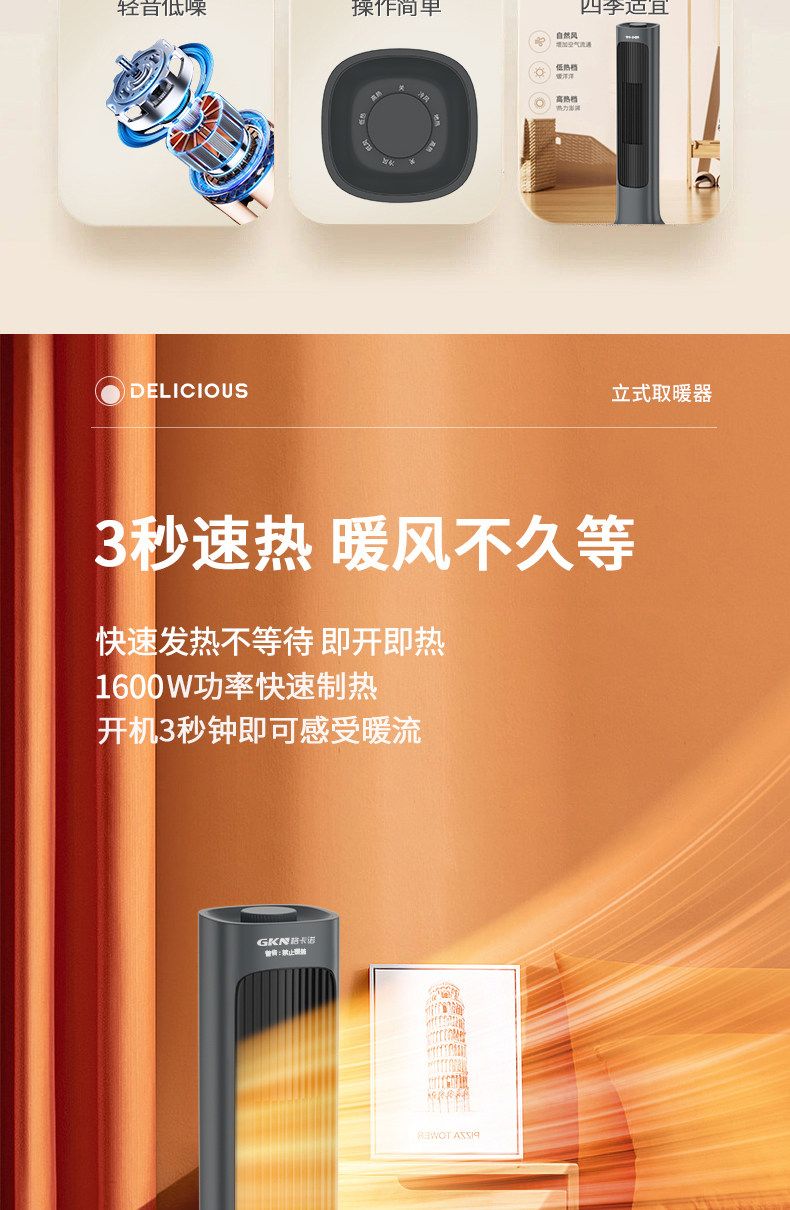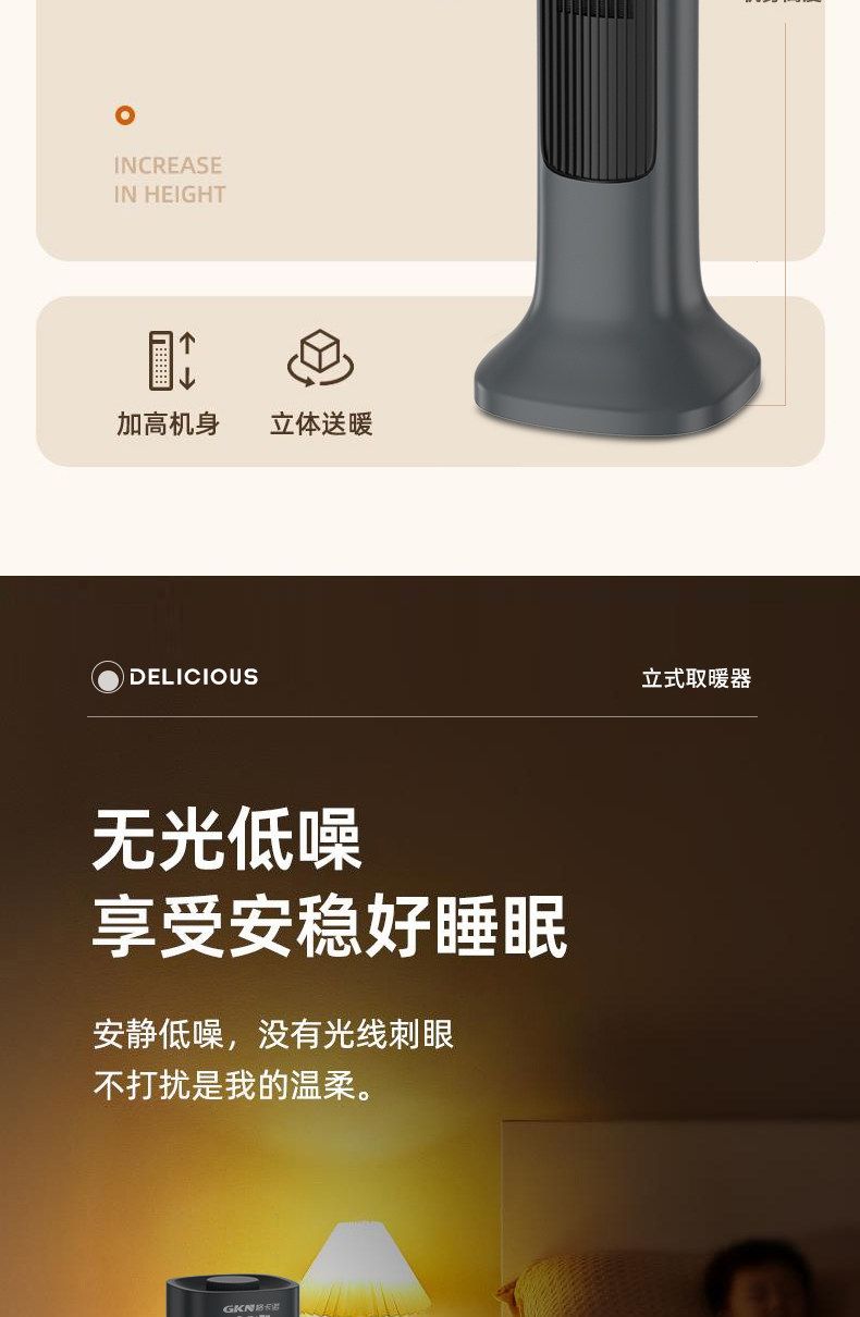格卡诺新款立式取暖器家用卧室暖风机浴室速热节能电暖机(连体)GKN-NFJ-12