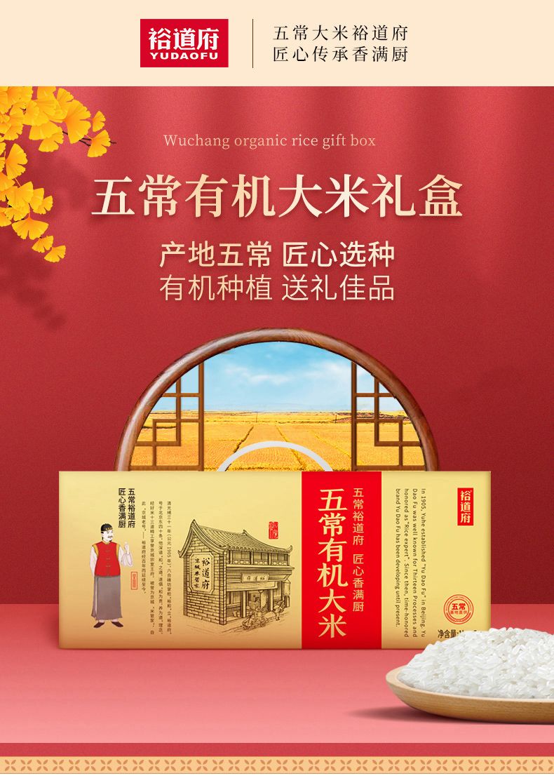商品名称:裕道府 匠心系列五常有机大米长粒香礼盒 东北大米五常大米五谷