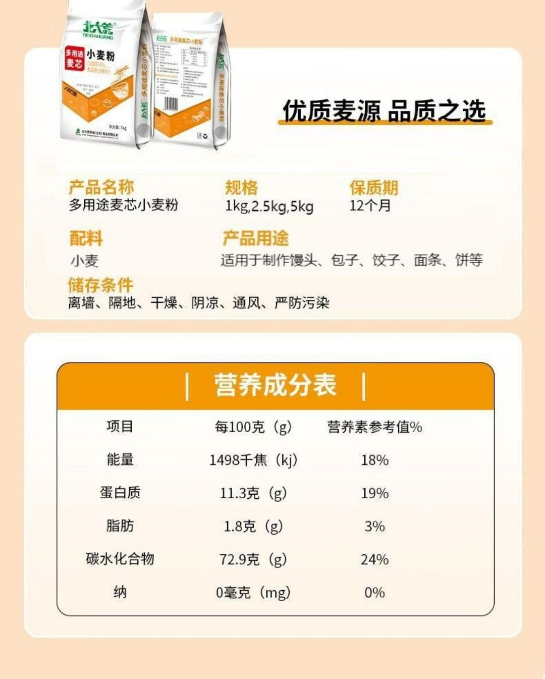 商品名称:北大荒 大荒印象多用途麦芯粉面粉 包子馒头面条通用