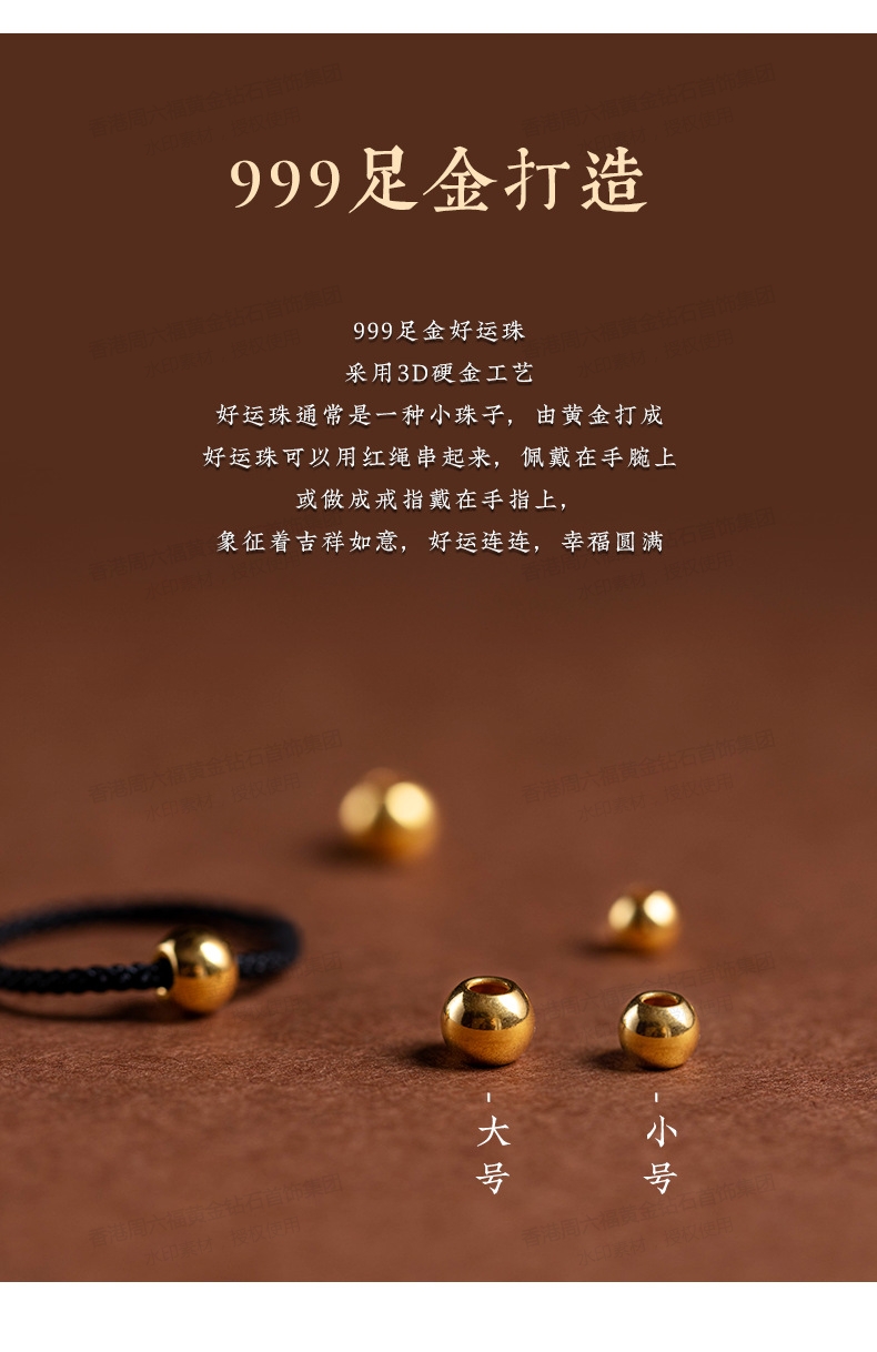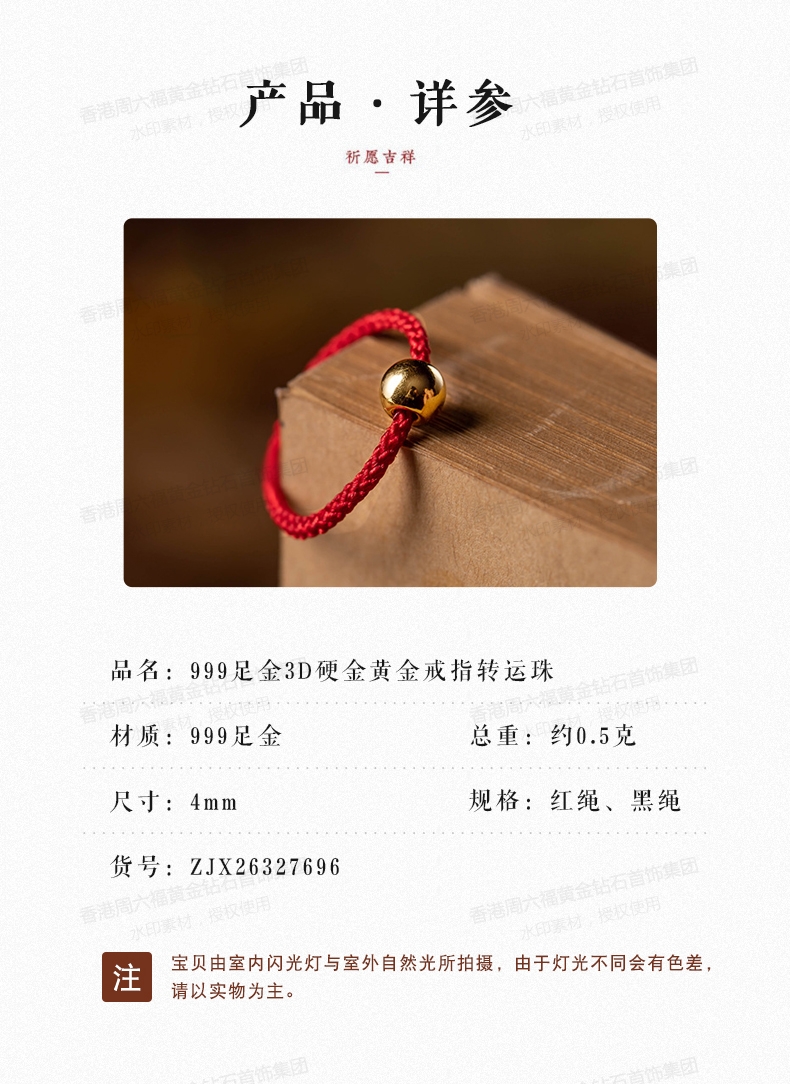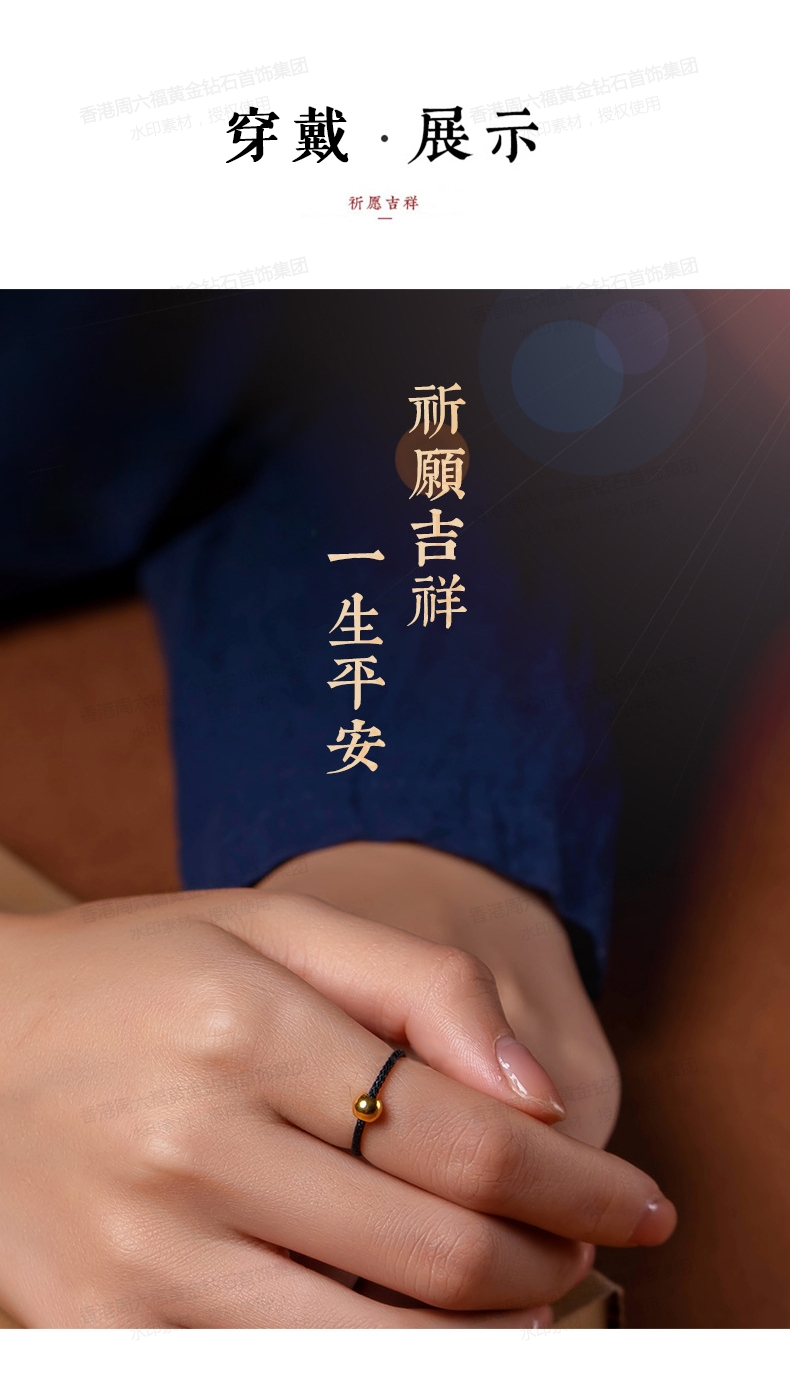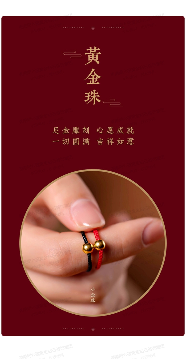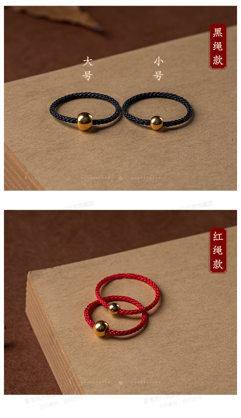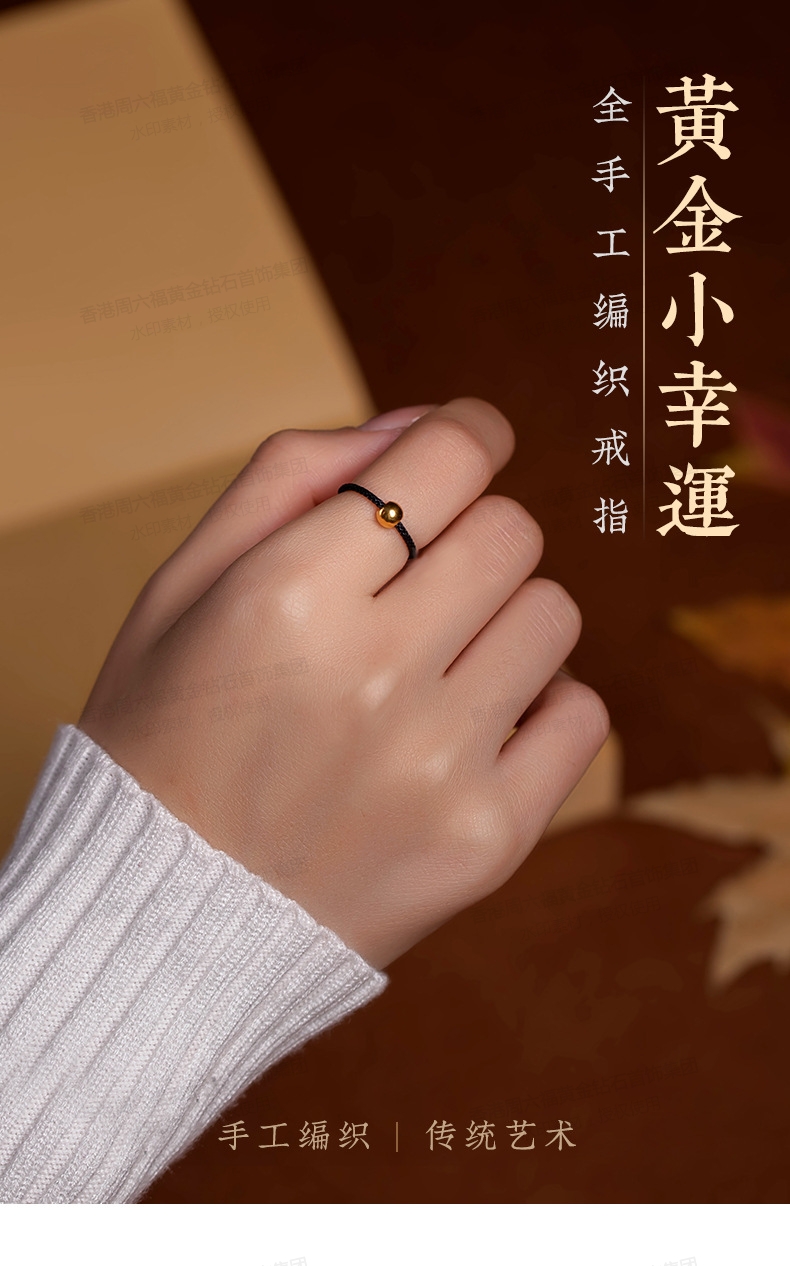 商品名称:香港周六福5G黄金-足金3D硬金黄金戒指转运珠女男情侣编织【材质:足金含约:0.1g】