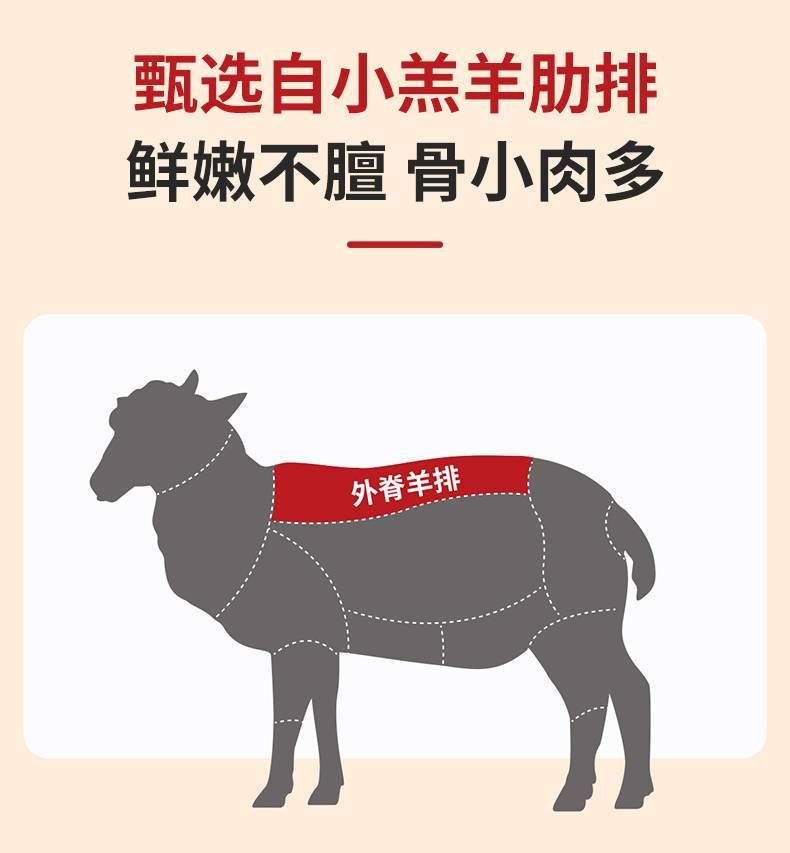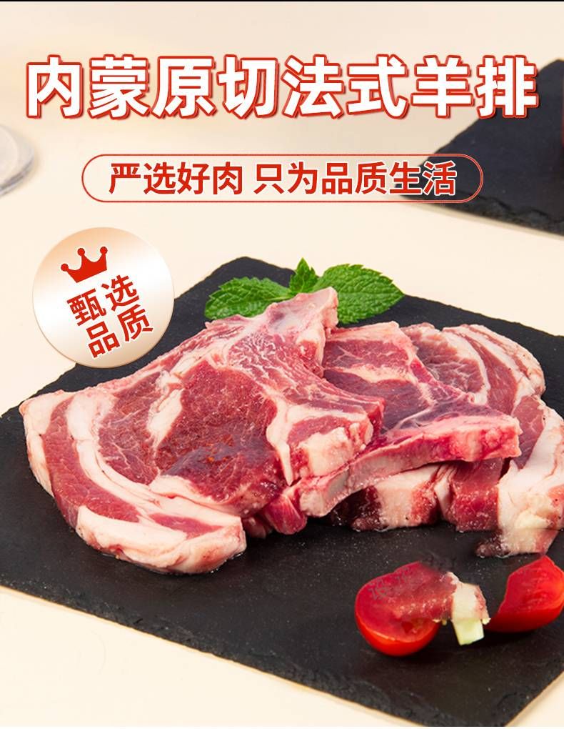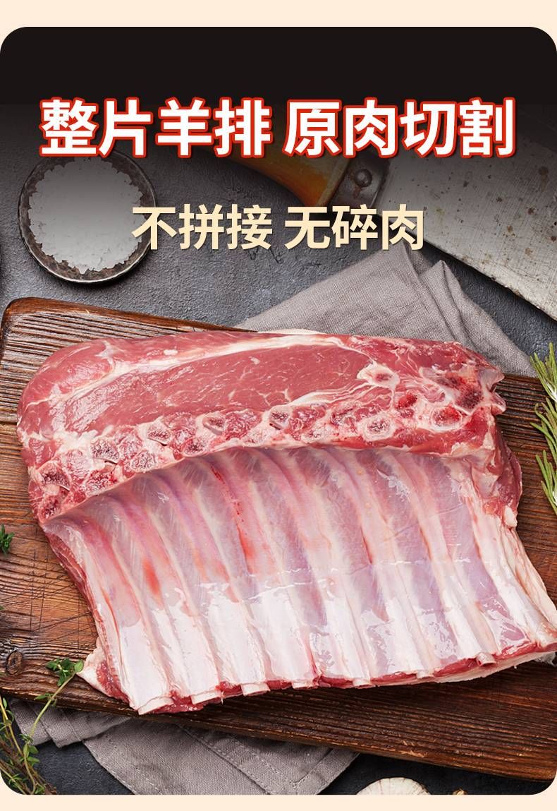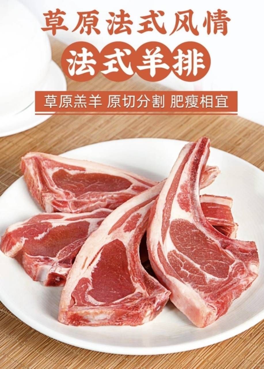 商品名称:大黄鲜森内蒙原切羊法排2斤18-20支