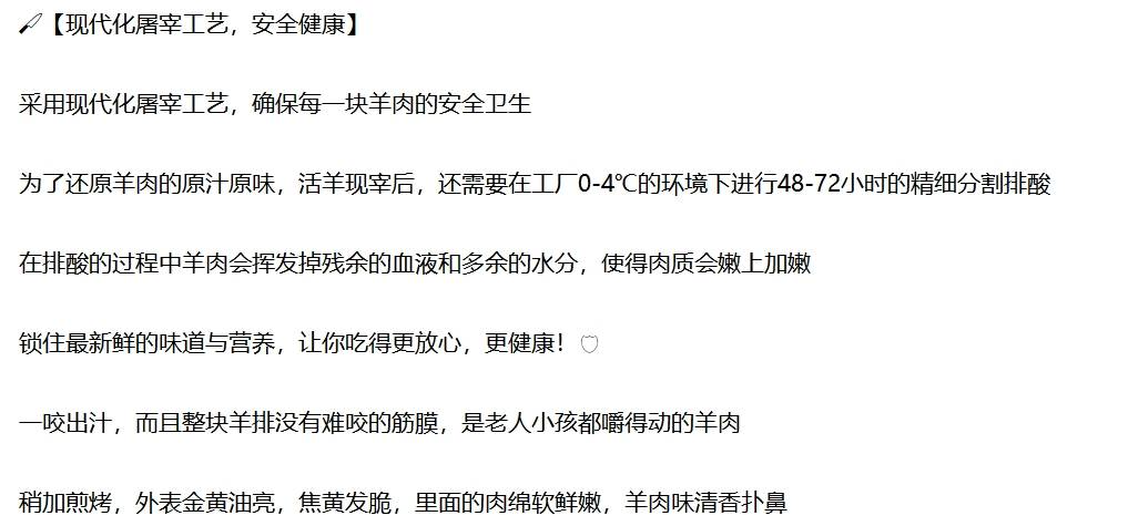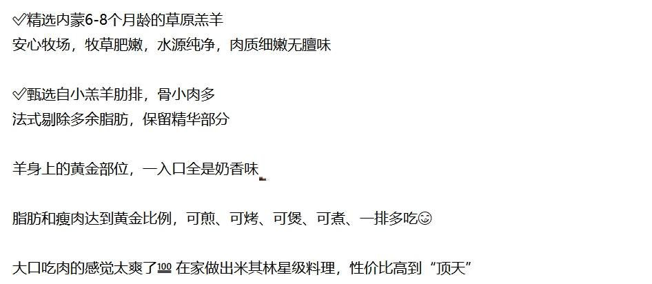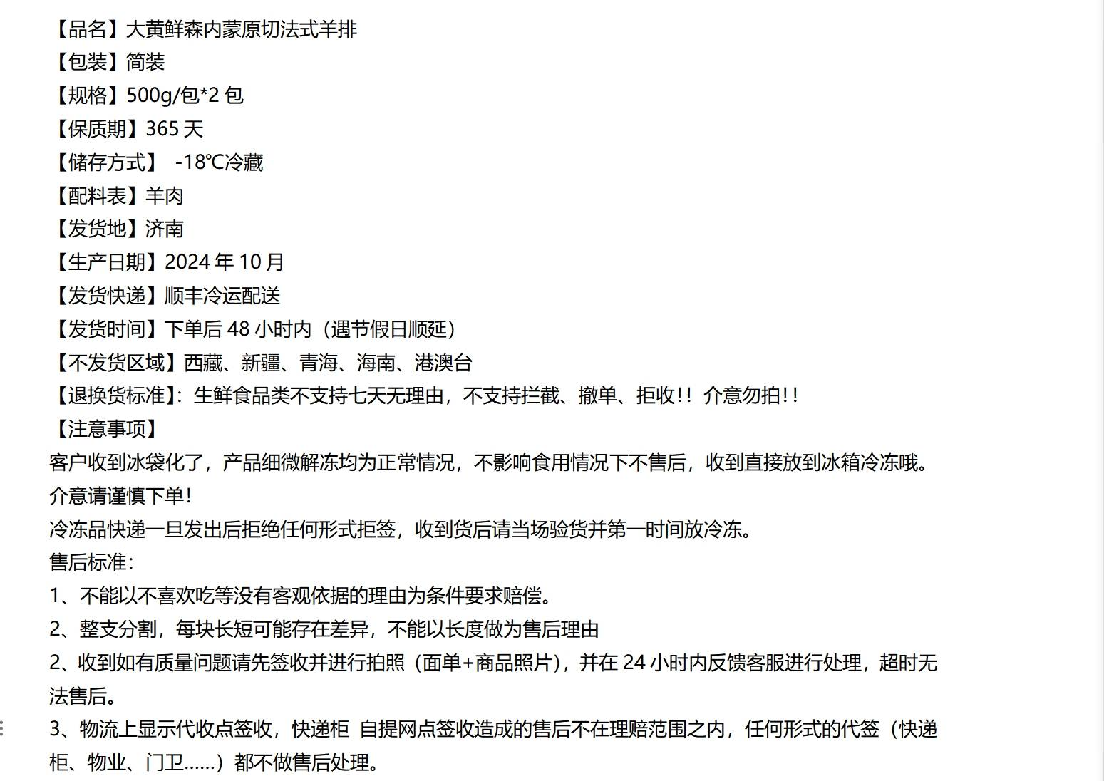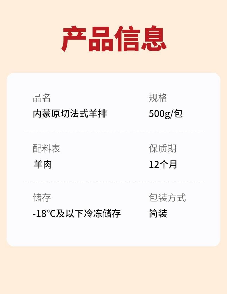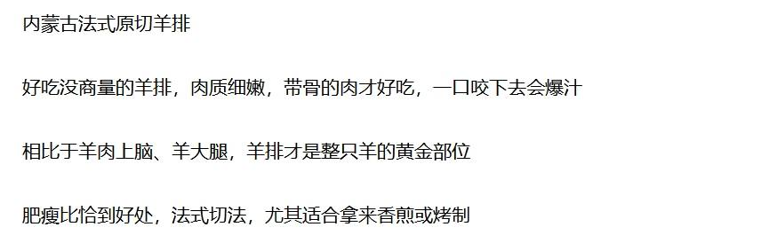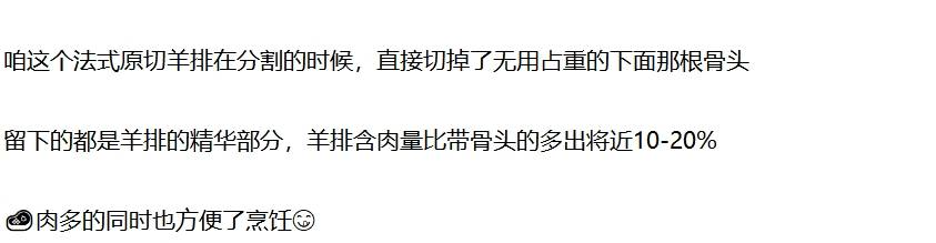 商品名称:大黄鲜森内蒙原切羊法排2斤18-20支