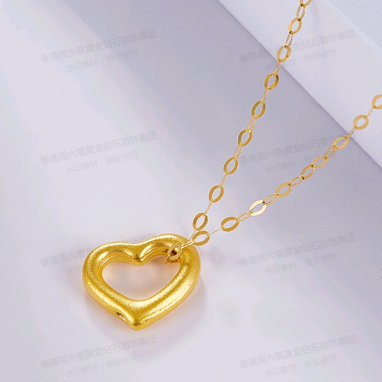 香港周六福5G黄金-足金镂空爱心吊坠YJ1378【材质:足金含约:0.1g 内镶3DAG模型】