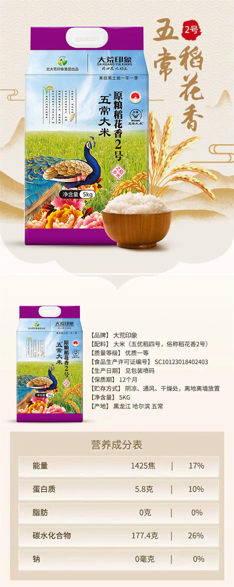 大荒印象五常大米稻花香2号大米5kg