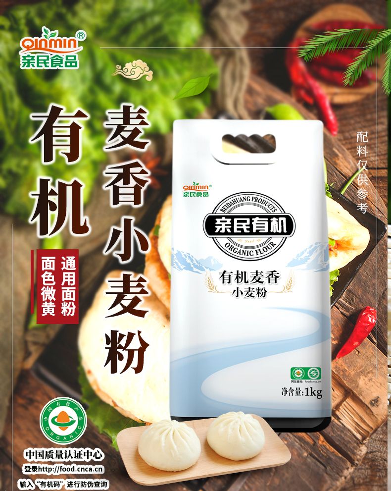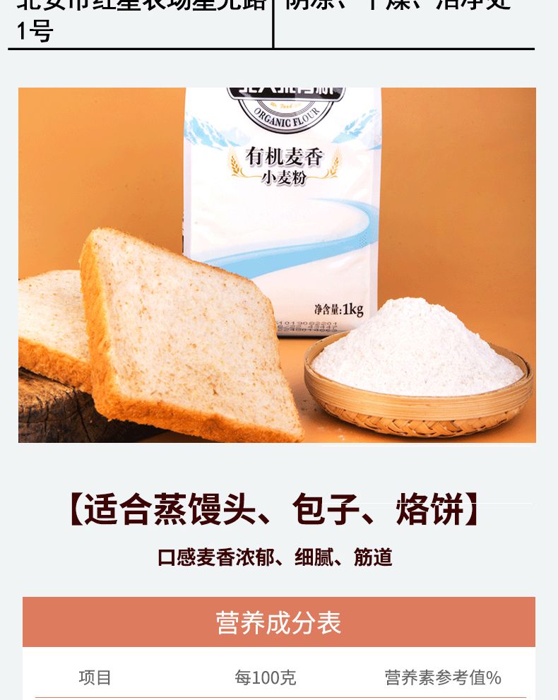 商品名称:北大荒亲民有机麦香小麦粉2袋装 1kg*2 新日期
