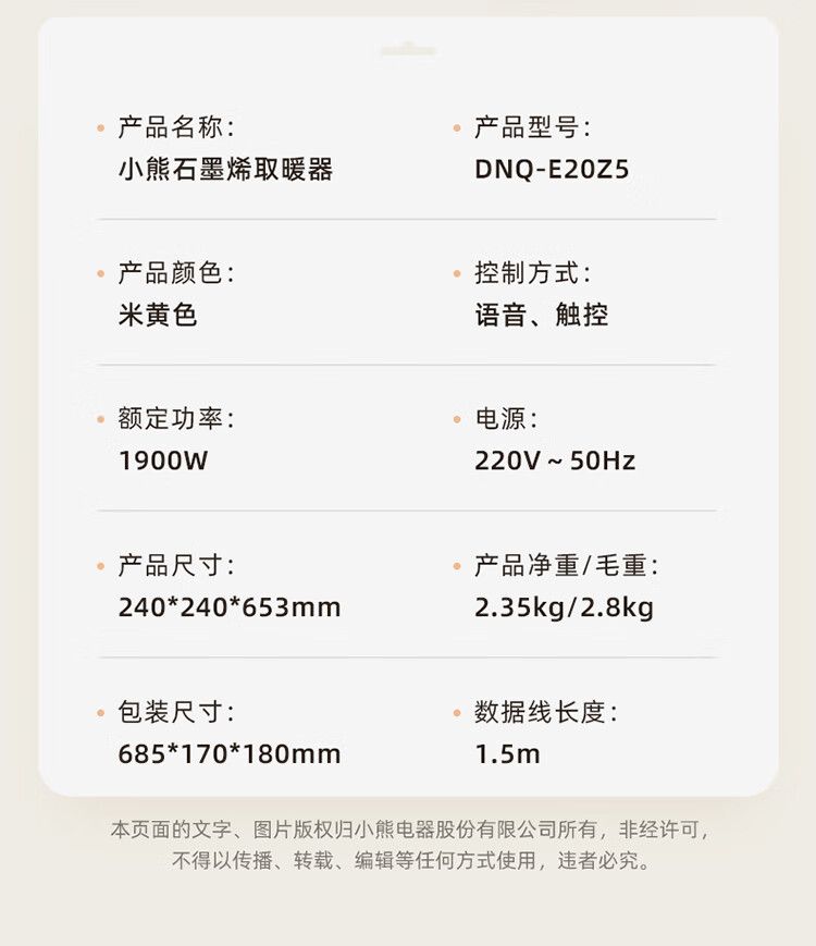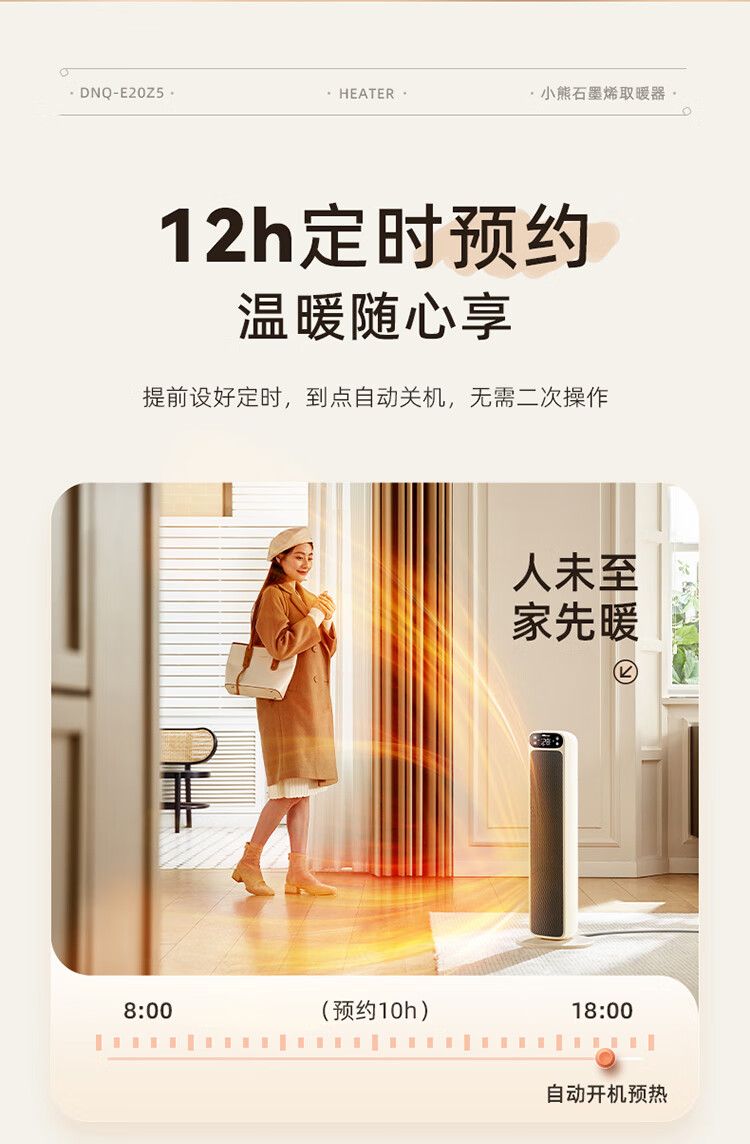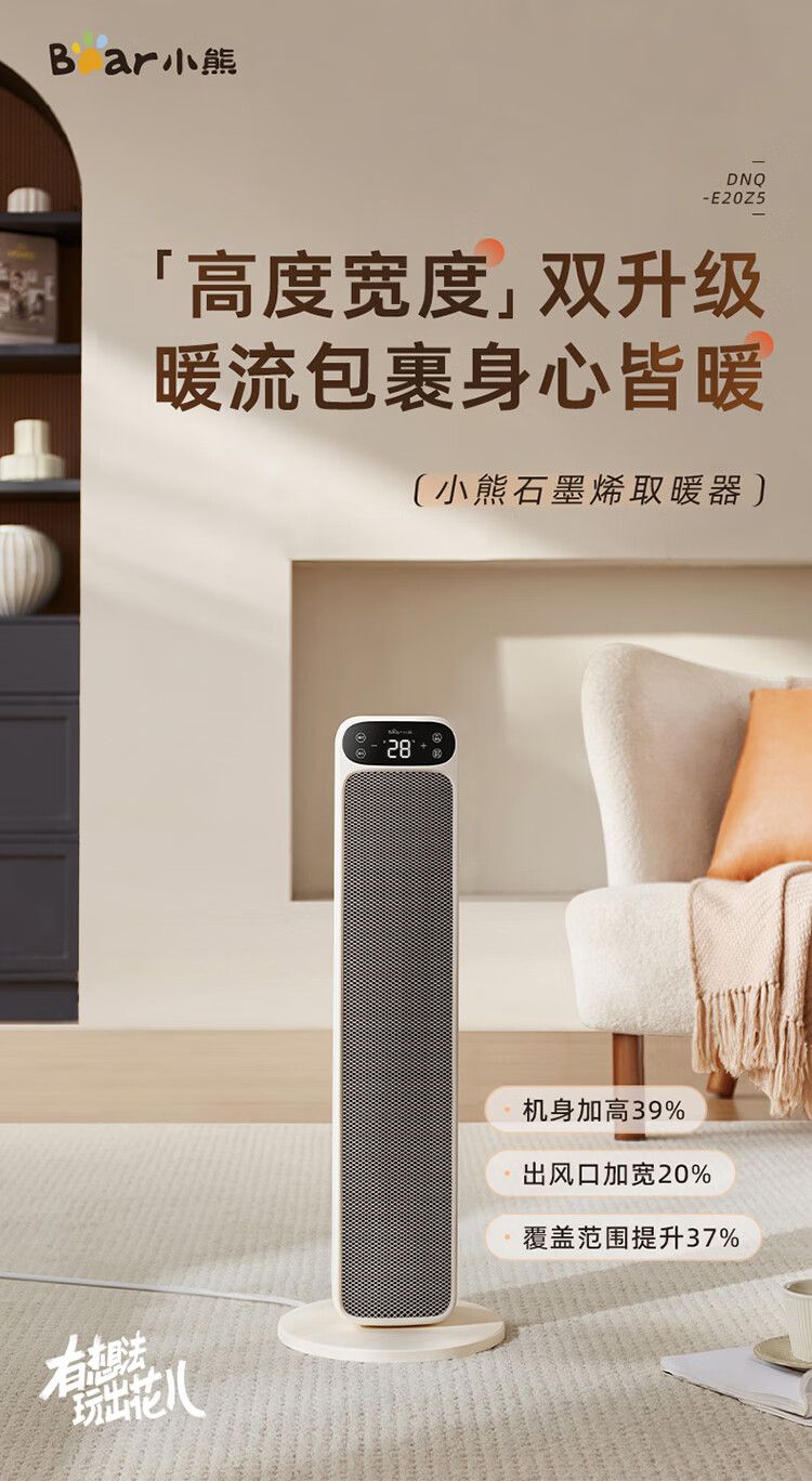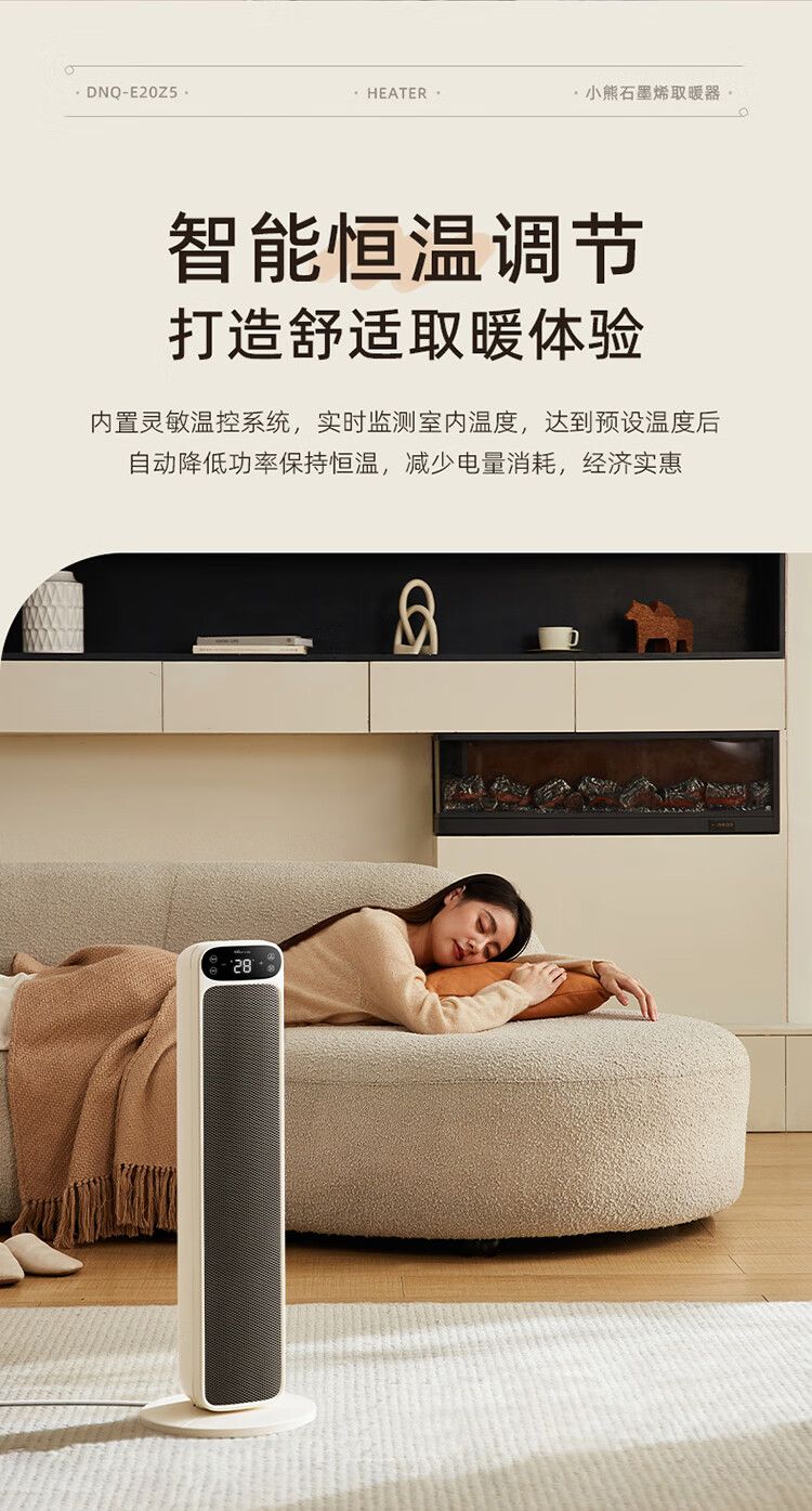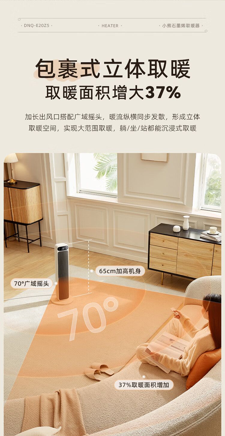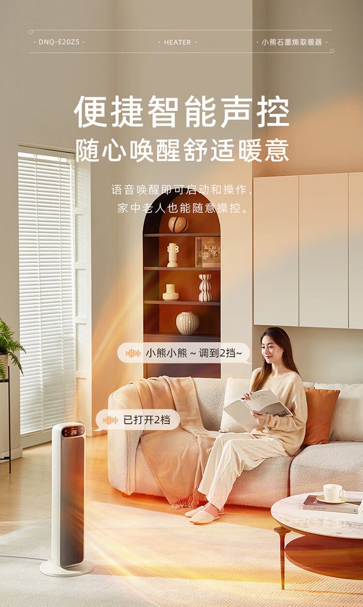 商品名称:小熊取暖器DNQ-E20Z5 立式电暖器摇头电暖气电热扇石墨烯暖风机 语音智控恒温热风机