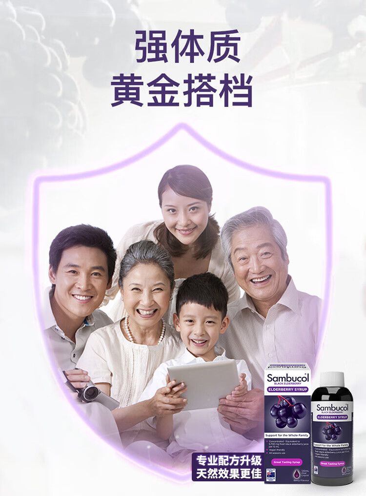 Nature’s Way澳萃维佳思敏善倍康Sambucol黑接骨木莓糖浆复合维生素c口服液营养品120ml/瓶