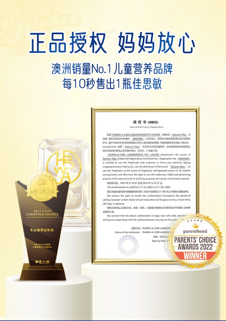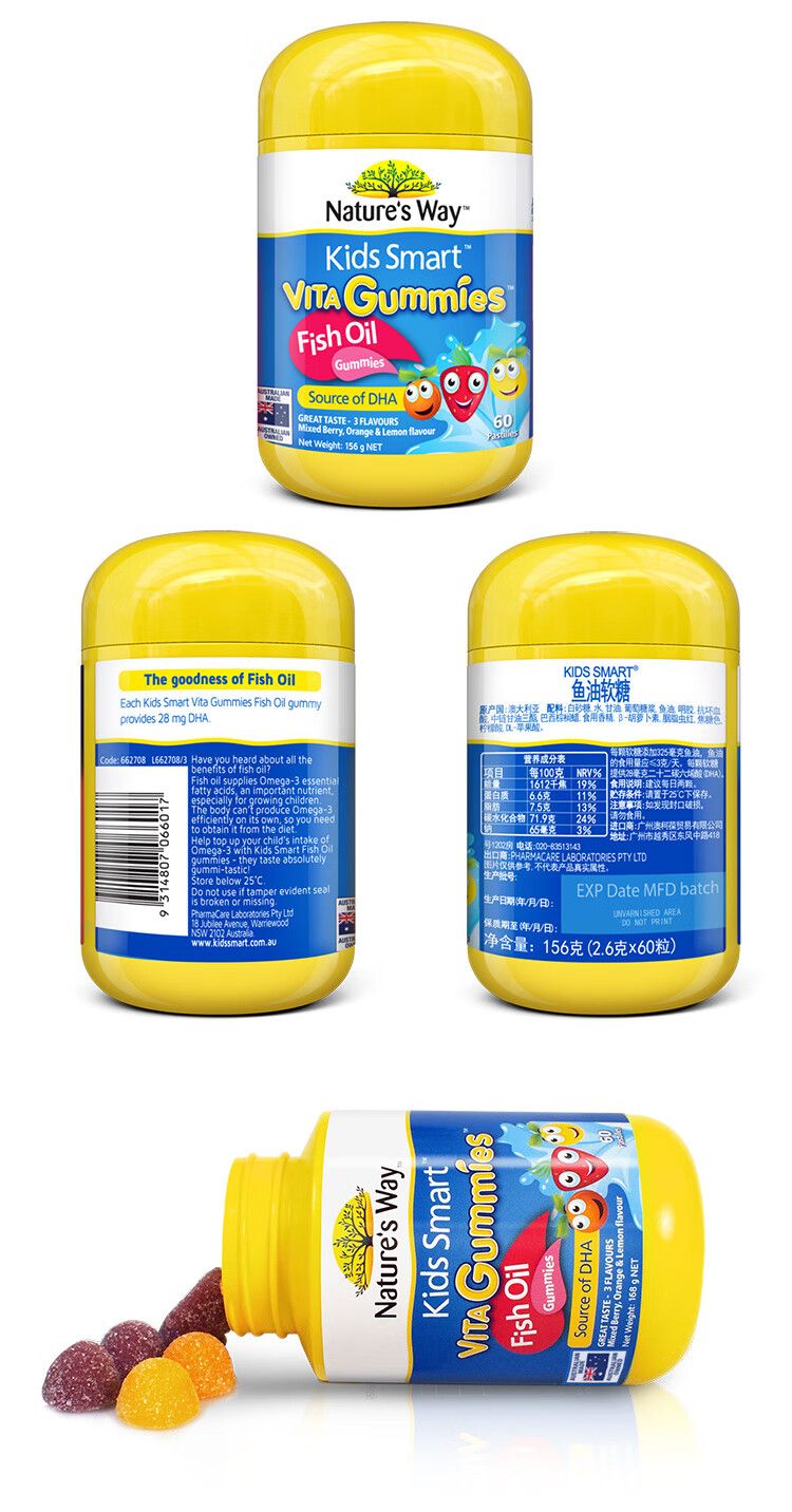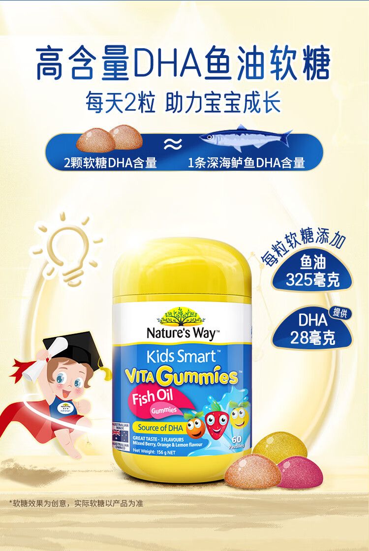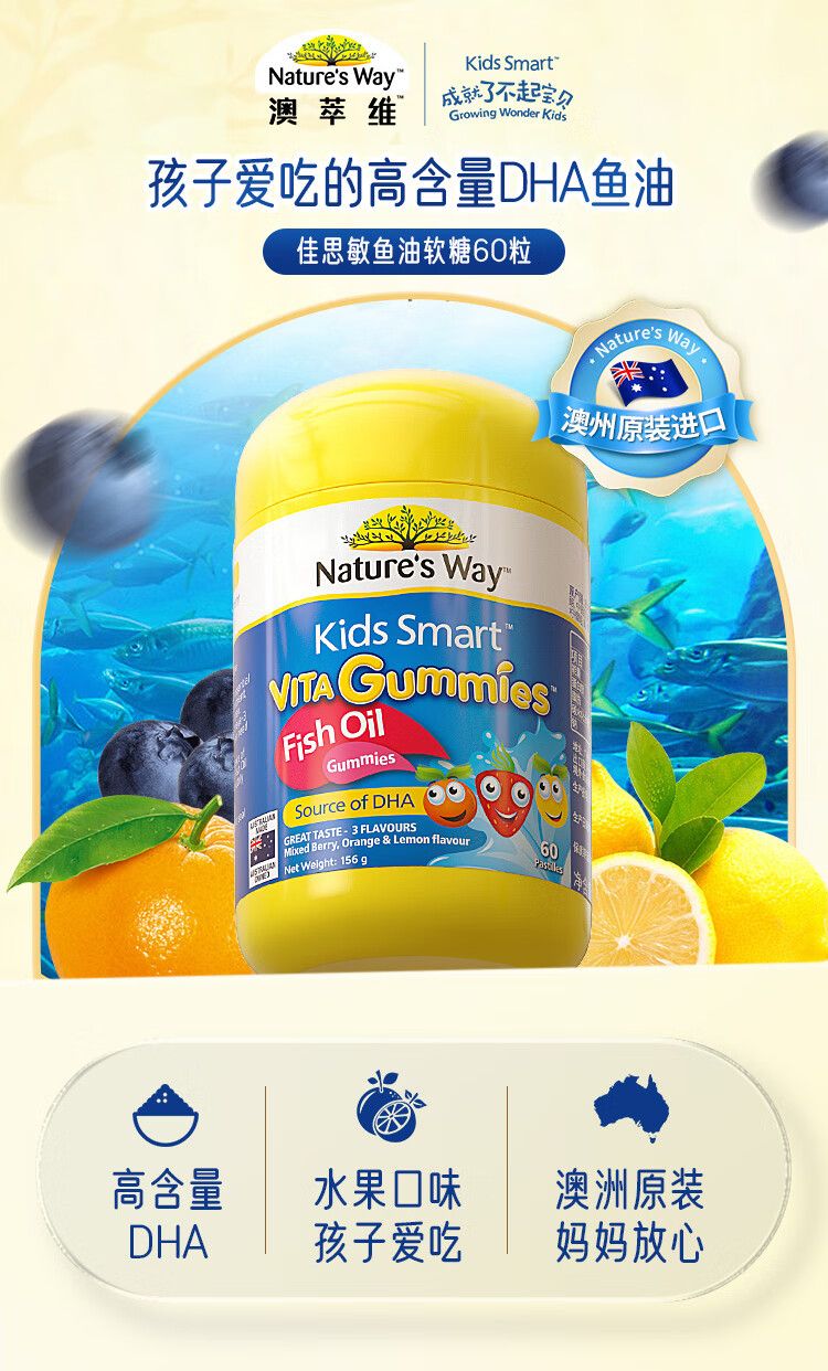 商品名称:Nature’s Way澳萃维佳思敏dha婴幼儿儿童学生补脑护眼深海鱼肝油藻油软糖澳洲进口3岁以上dha鱼油软糖60粒