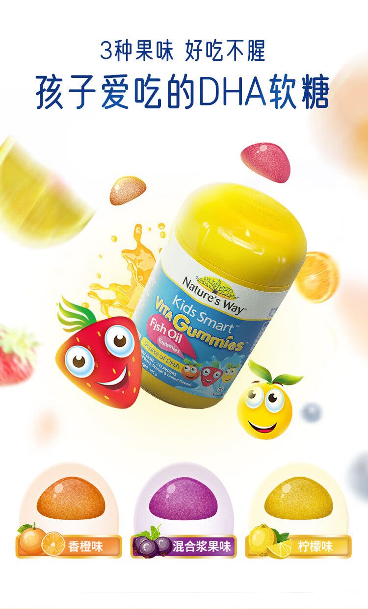 Nature’s Way澳萃维佳思敏dha婴幼儿儿童学生补脑护眼深海鱼肝油藻油软糖澳洲进口3岁以上dha鱼油软糖60粒