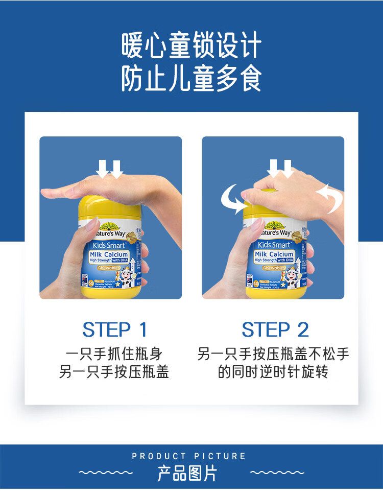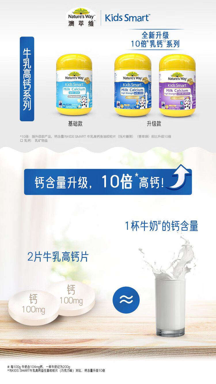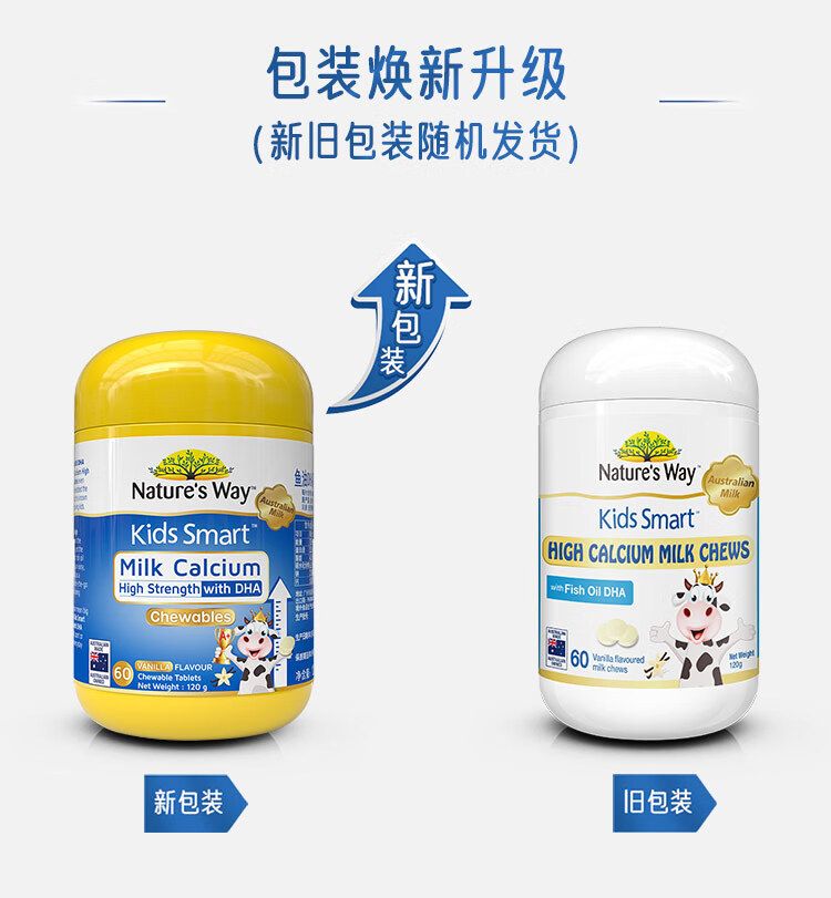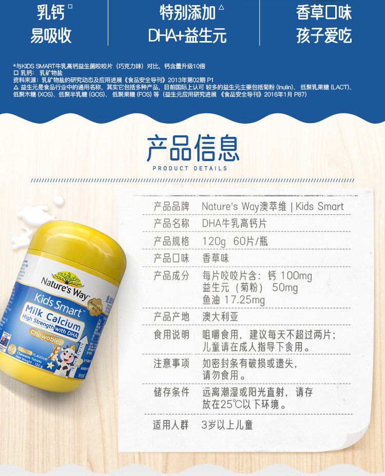 Nature’s Way澳萃维佳思敏钙片儿童dha婴幼儿补钙益生元进口牛乳高钙dha鱼油3岁以上佳思敏钙片香草味60片