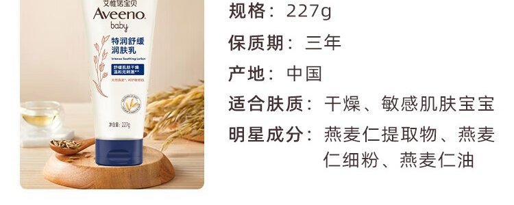 商品名称:艾惟诺(Aveeno)宝贝特润舒缓润肤乳 227g