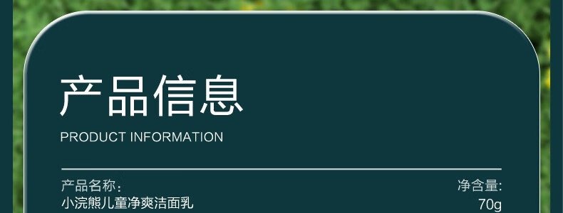 商品名称:小浣熊 儿童净爽洁面乳 70g