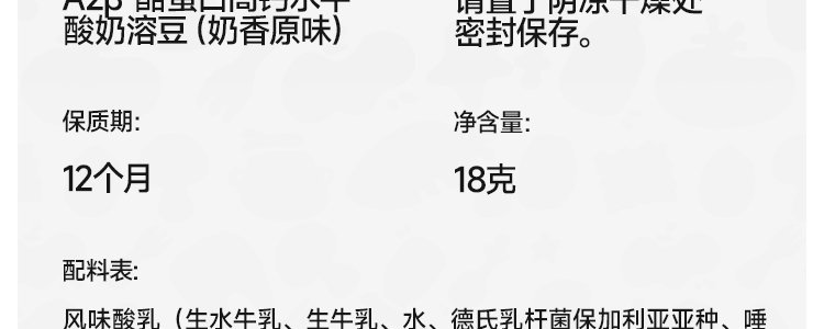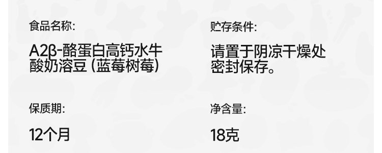 商品名称:秋田满满 A2β-酪蛋白高钙水牛酸奶溶豆(奶香原味)18g