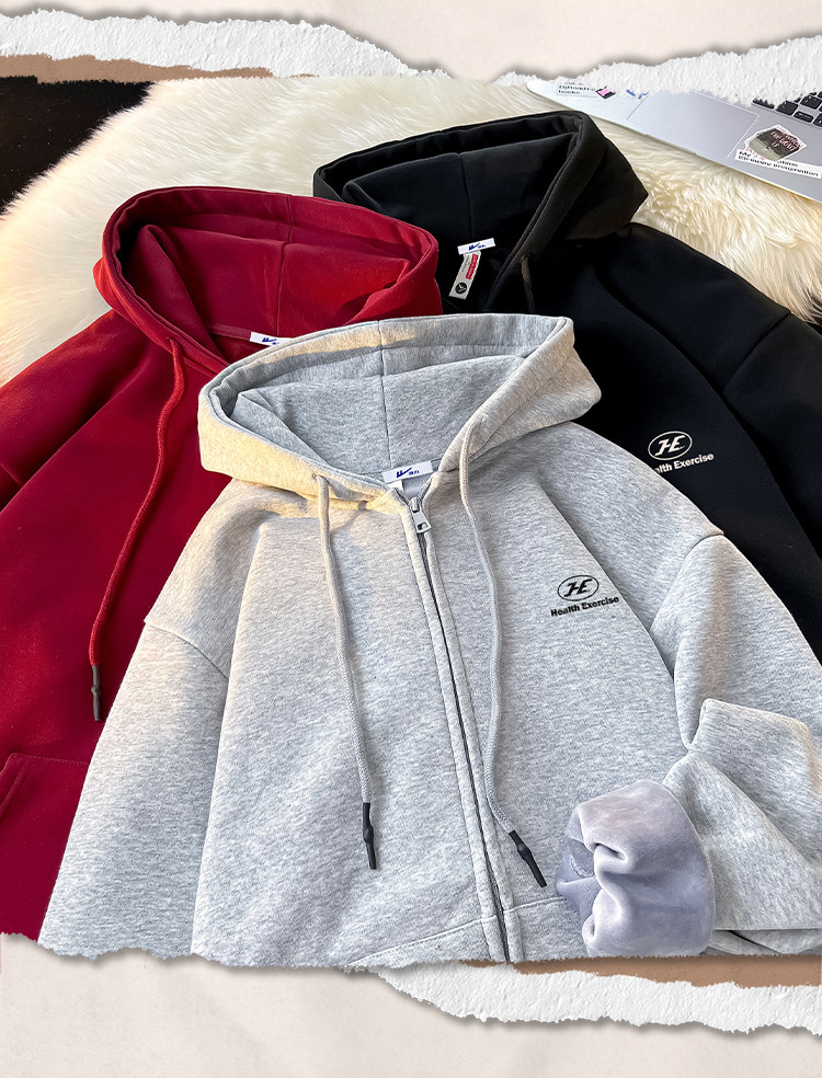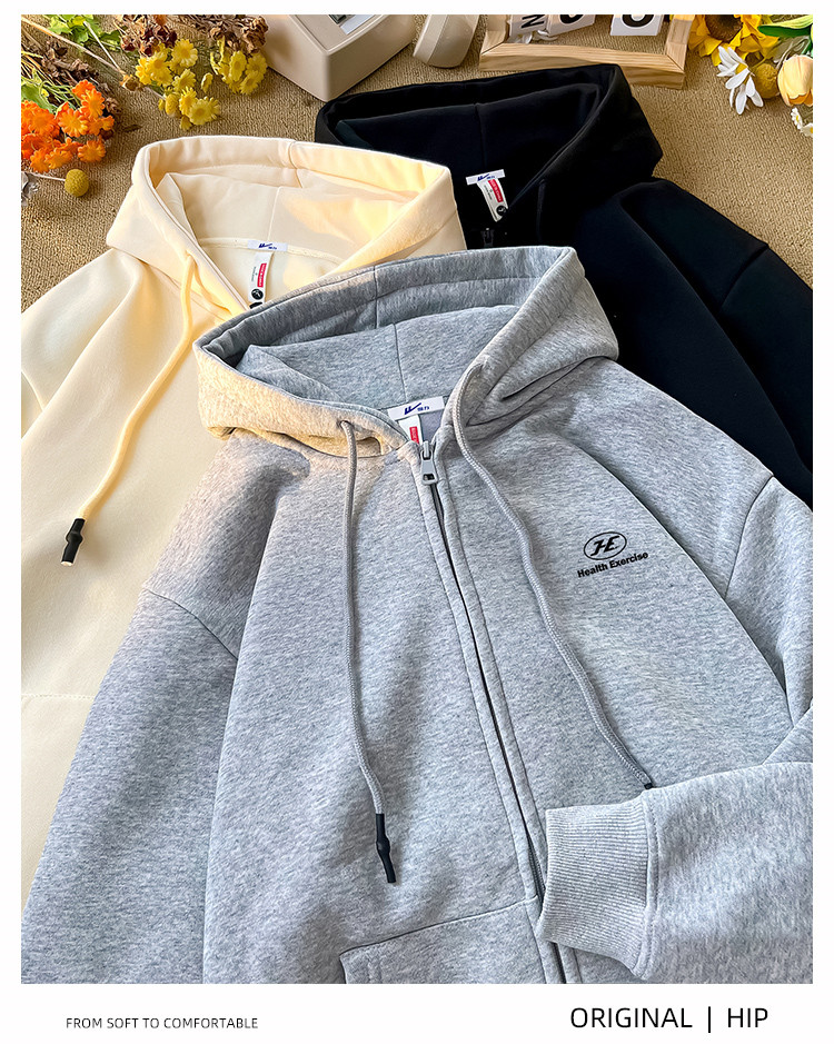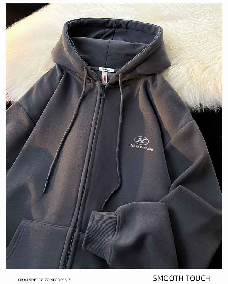 【重磅棉】美式oversize连帽拉链外套男女运动开衫情侣装 252563