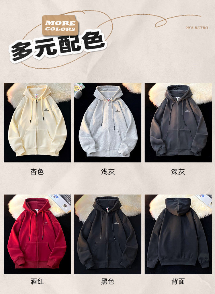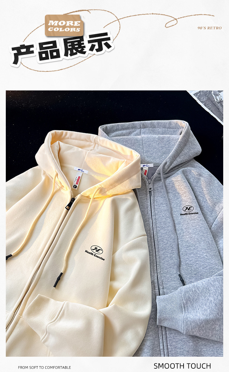 商品名称:【重磅棉】美式oversize连帽拉链外套男女运动开衫情侣装 252563