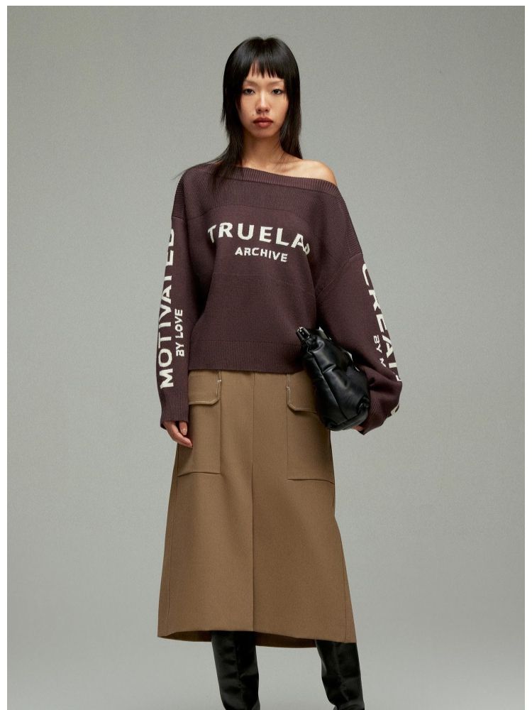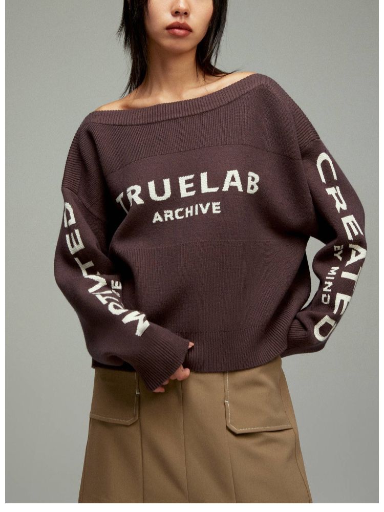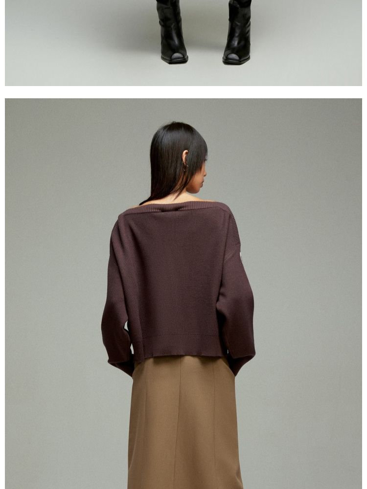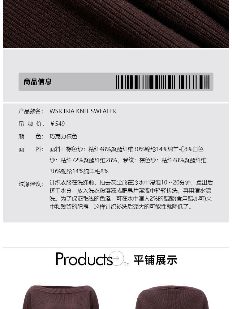 商品名称:【一字领设计】春季宽松一字领蝙蝠袖针织衫女 904858