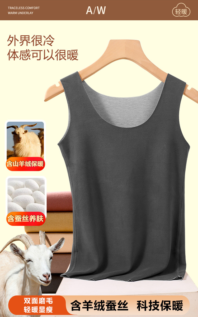 【含桑蚕丝】双面暖绒无痕轻盈修身打底高弹女士保暖背心秋 640094