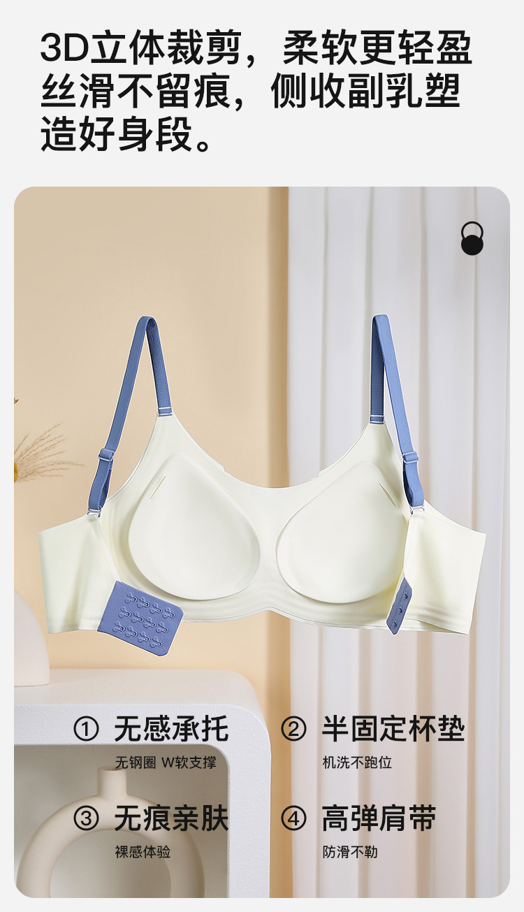 商品名称:【大胸显小内衣夏季薄款无痕女士聚拢透气性感美背无钢圈文胸罩 877643