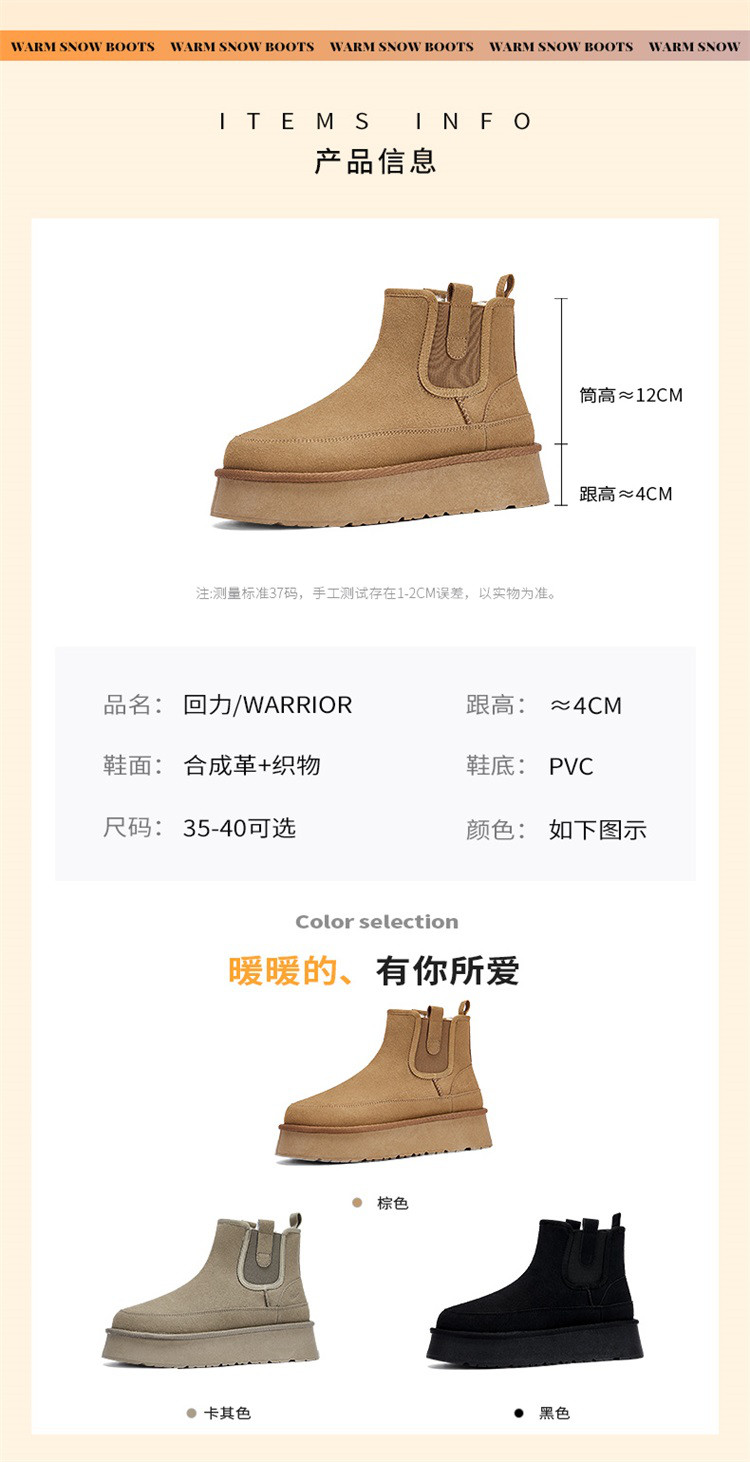 商品名称:雪地靴女冬季加绒加厚百搭厚底棉鞋女款舒适保暖外穿休闲鞋子女 306757