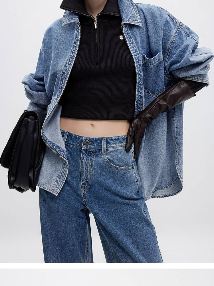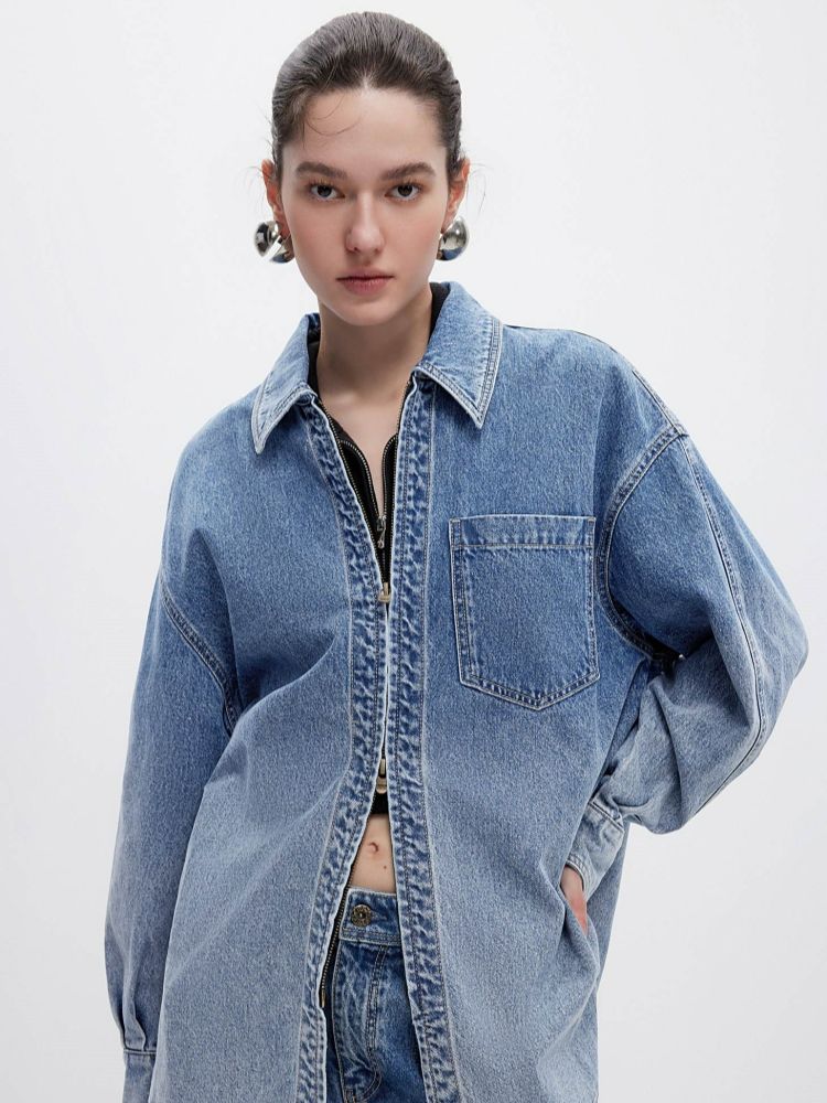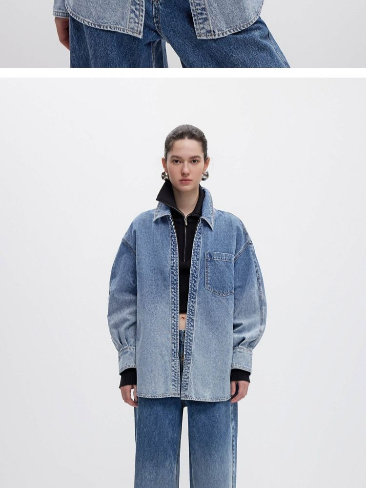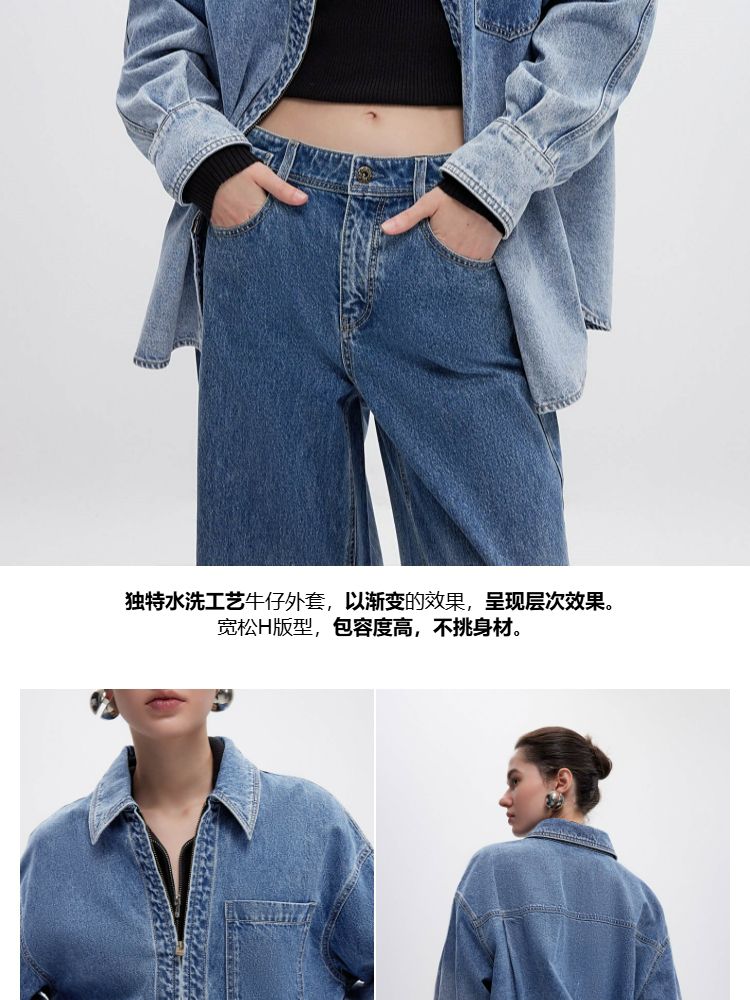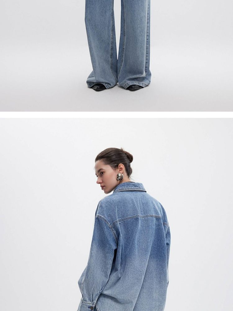 【水洗渐变】25夏季含莱赛尔OVERSIZE翻领牛仔衬衫女 507226
