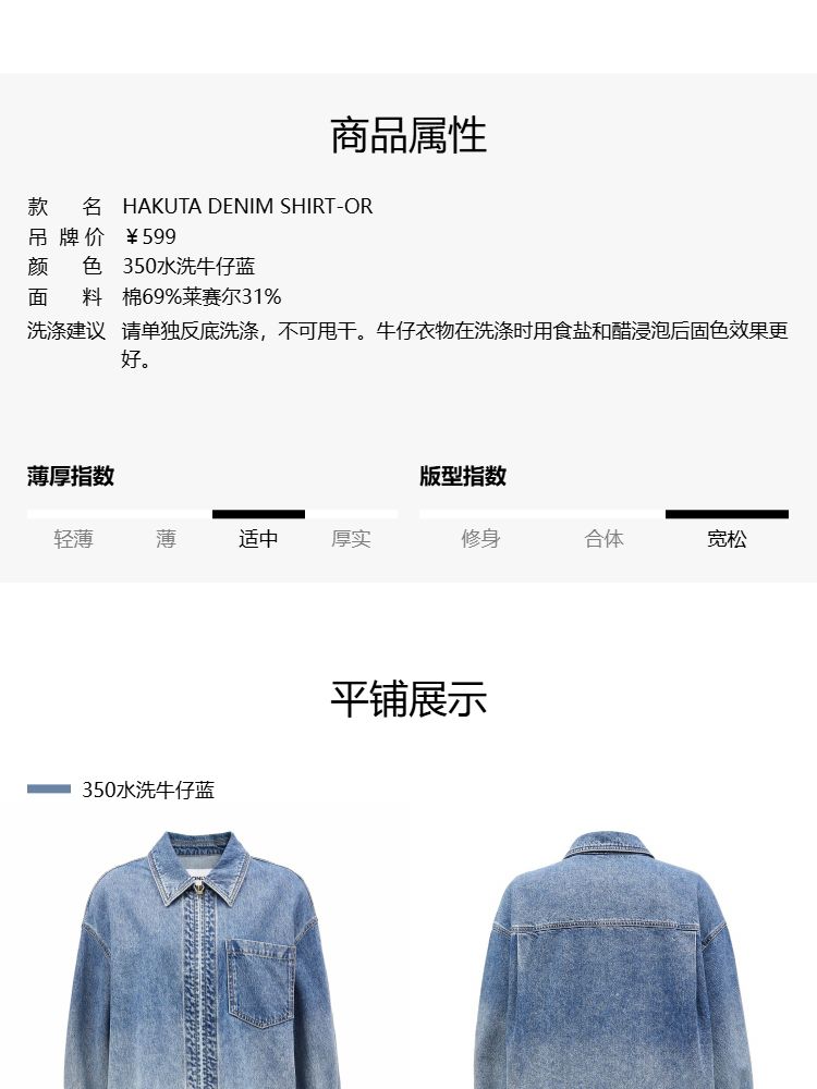 商品名称:【水洗渐变】25夏季含莱赛尔OVERSIZE翻领牛仔衬衫女 507226