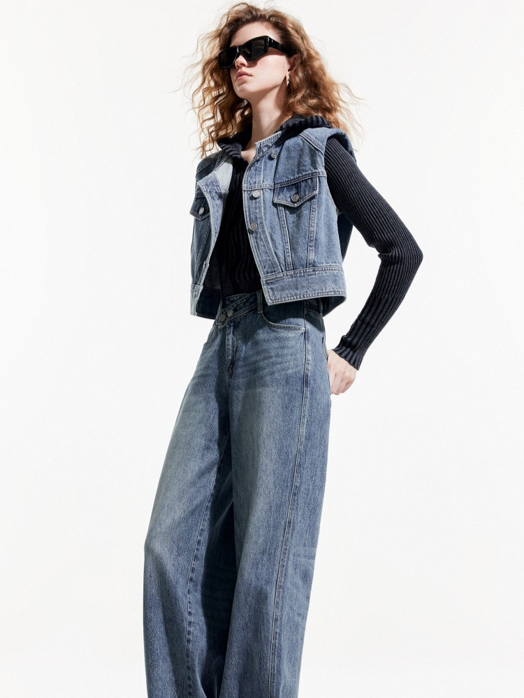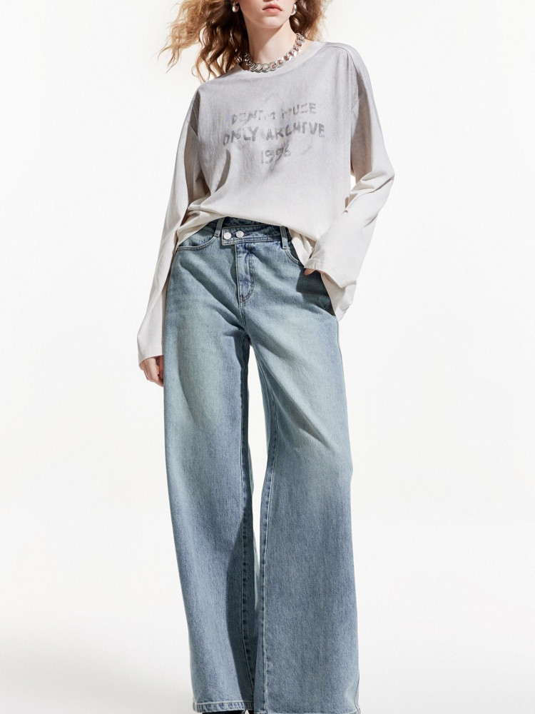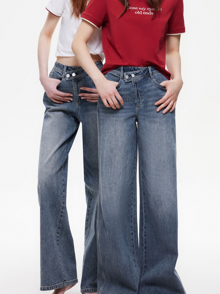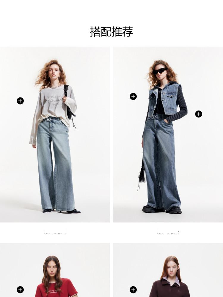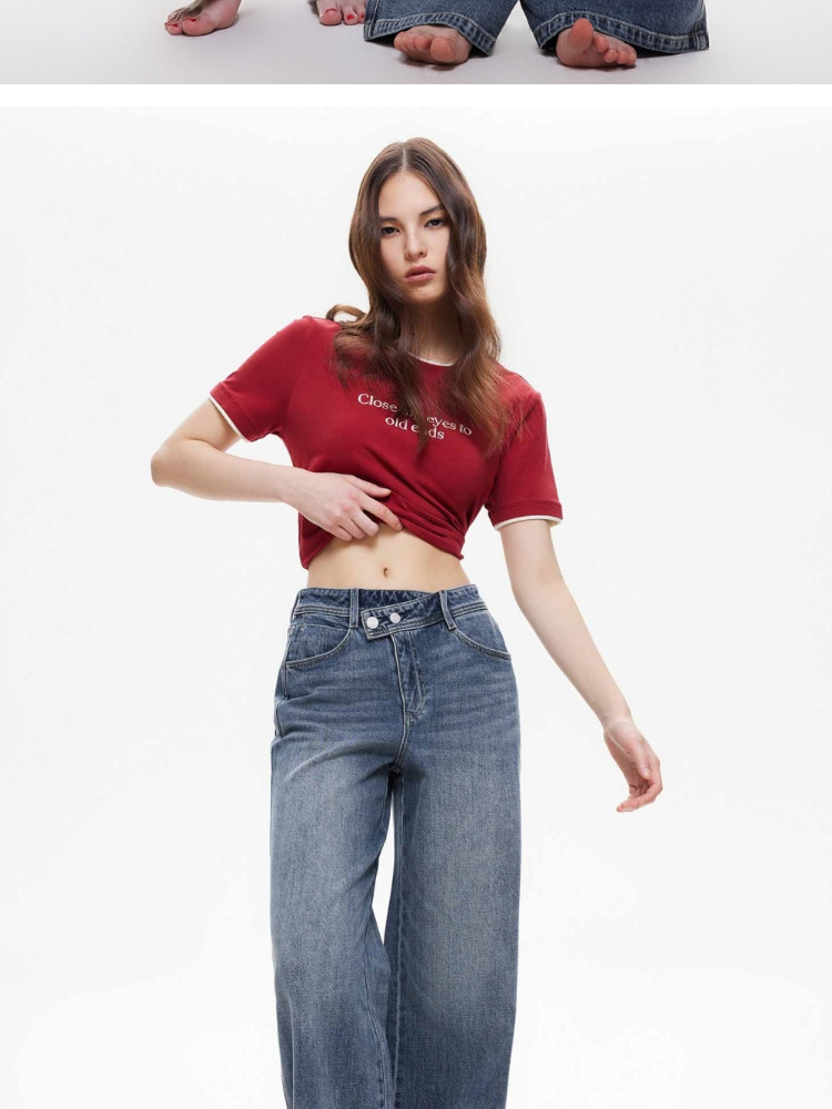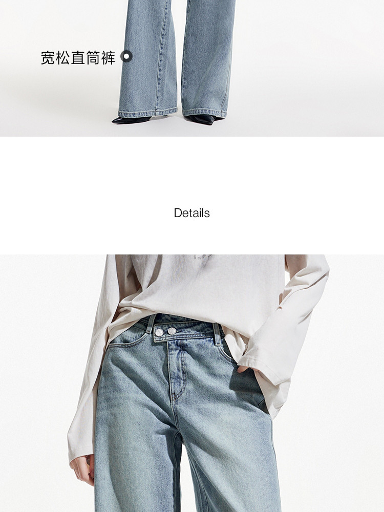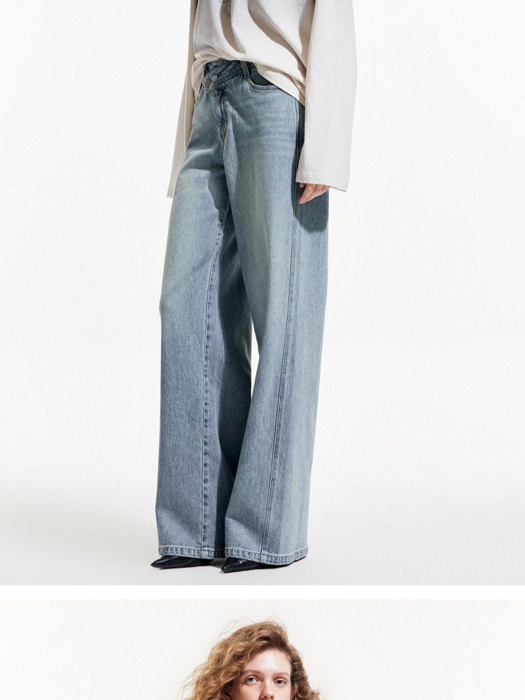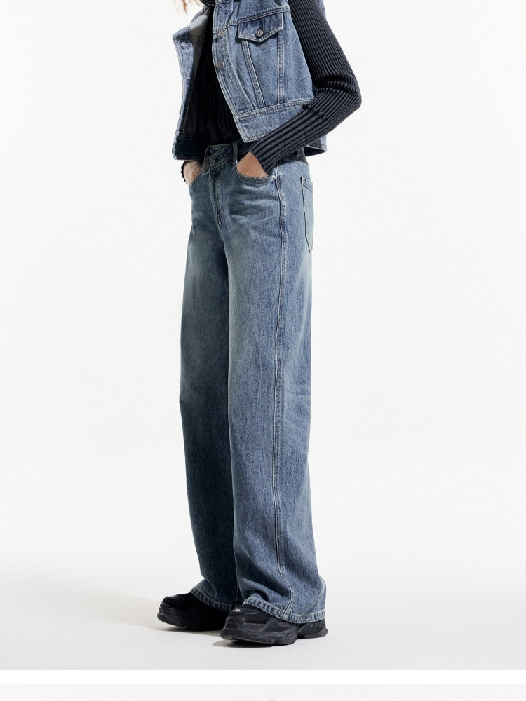 商品名称:【斜襟腰头】25夏季时尚个性高腰宽松直筒长裤牛仔裤女 654682