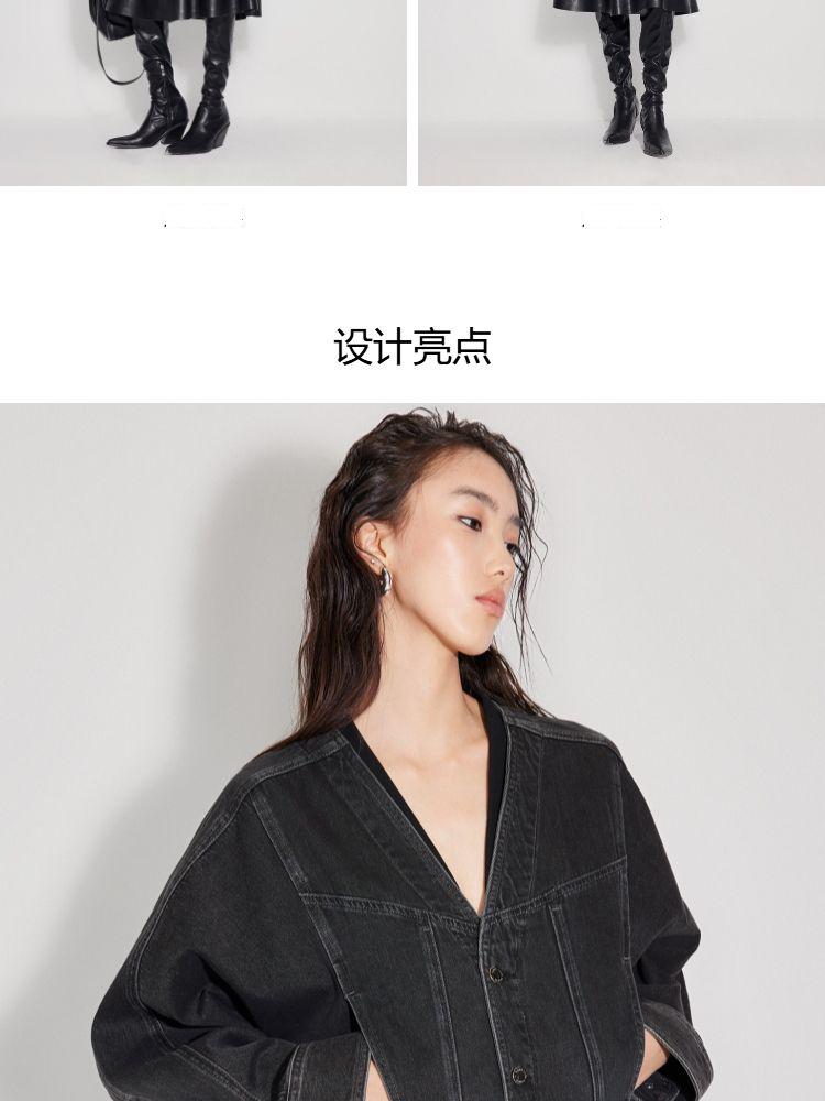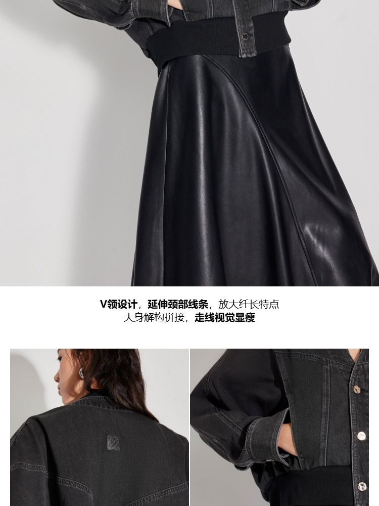 商品名称:【显瘦拼接牛仔】2025春季个性百搭宽松V领外套女 588314