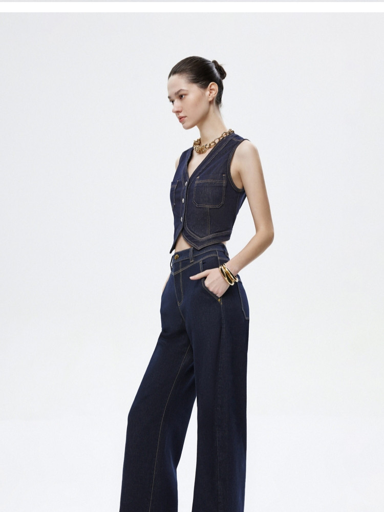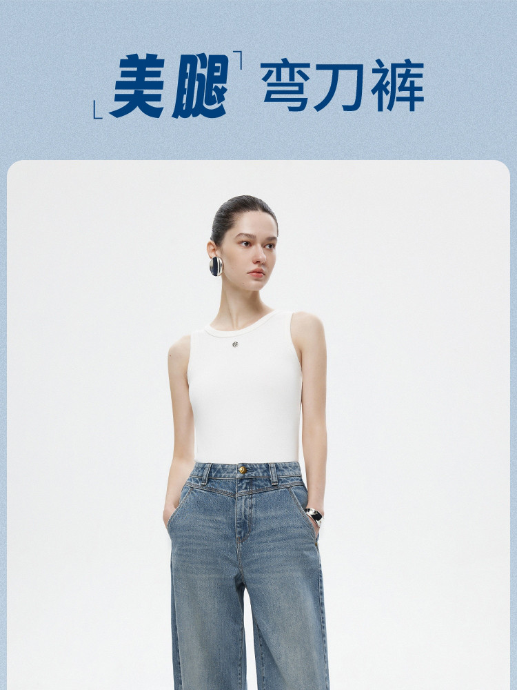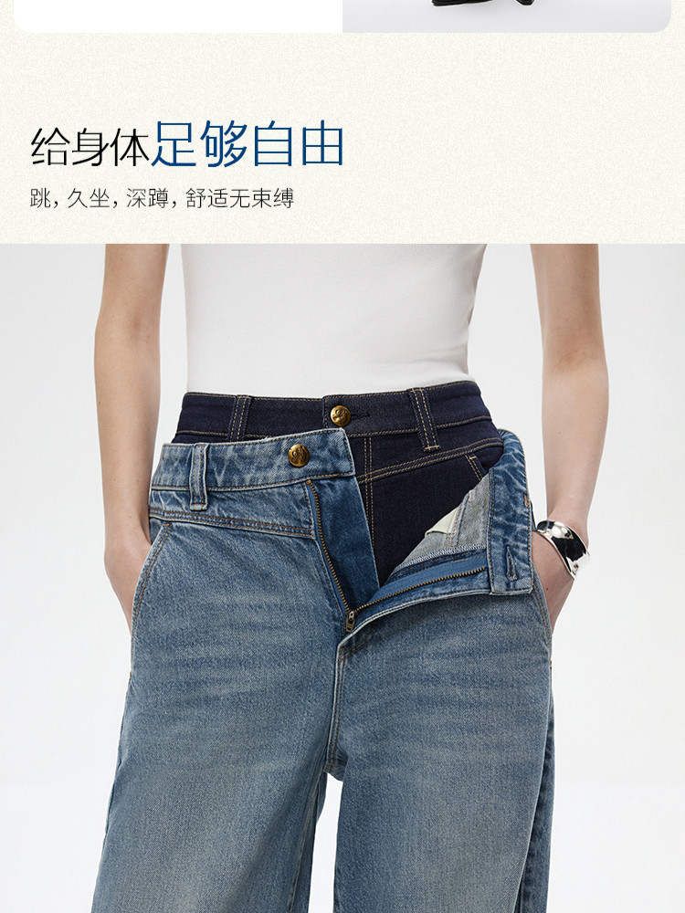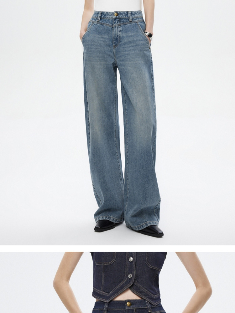 商品名称:【设计感水洗】2025夏季时尚纯棉阔腿裤长裤牛仔裤女 855386