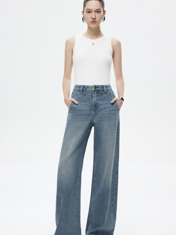 【设计感水洗】2025夏季时尚纯棉阔腿裤长裤牛仔裤女 855386