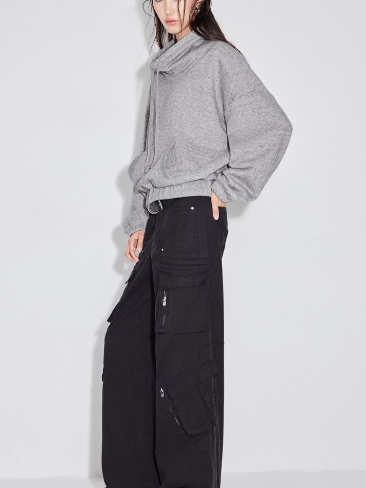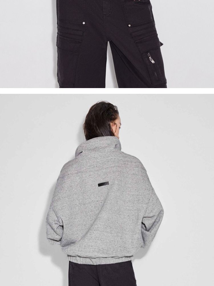 商品名称:【宽松拼接立领】2025春季休闲运动风落肩卫衣女 202714