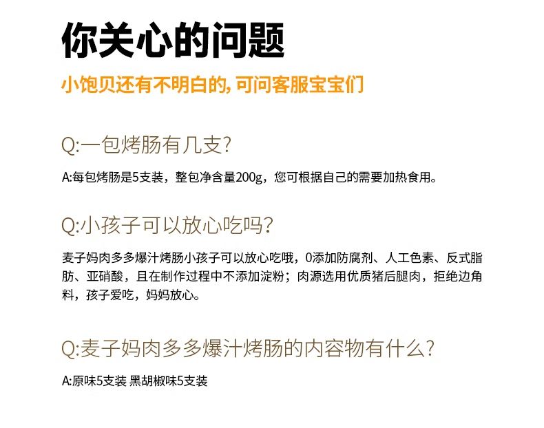 商品名称:麦子妈原味黑胡椒爆汁烤肠 肉肠香肠早餐火腿肠香肠 空气炸锅烧烤食材 新日期