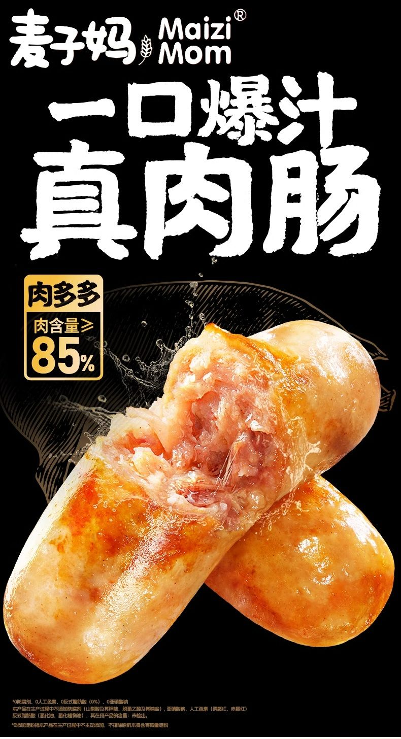 麦子妈原味黑胡椒爆汁烤肠 肉肠香肠早餐火腿肠香肠 空气炸锅烧烤食材 新日期